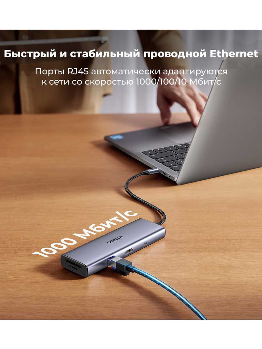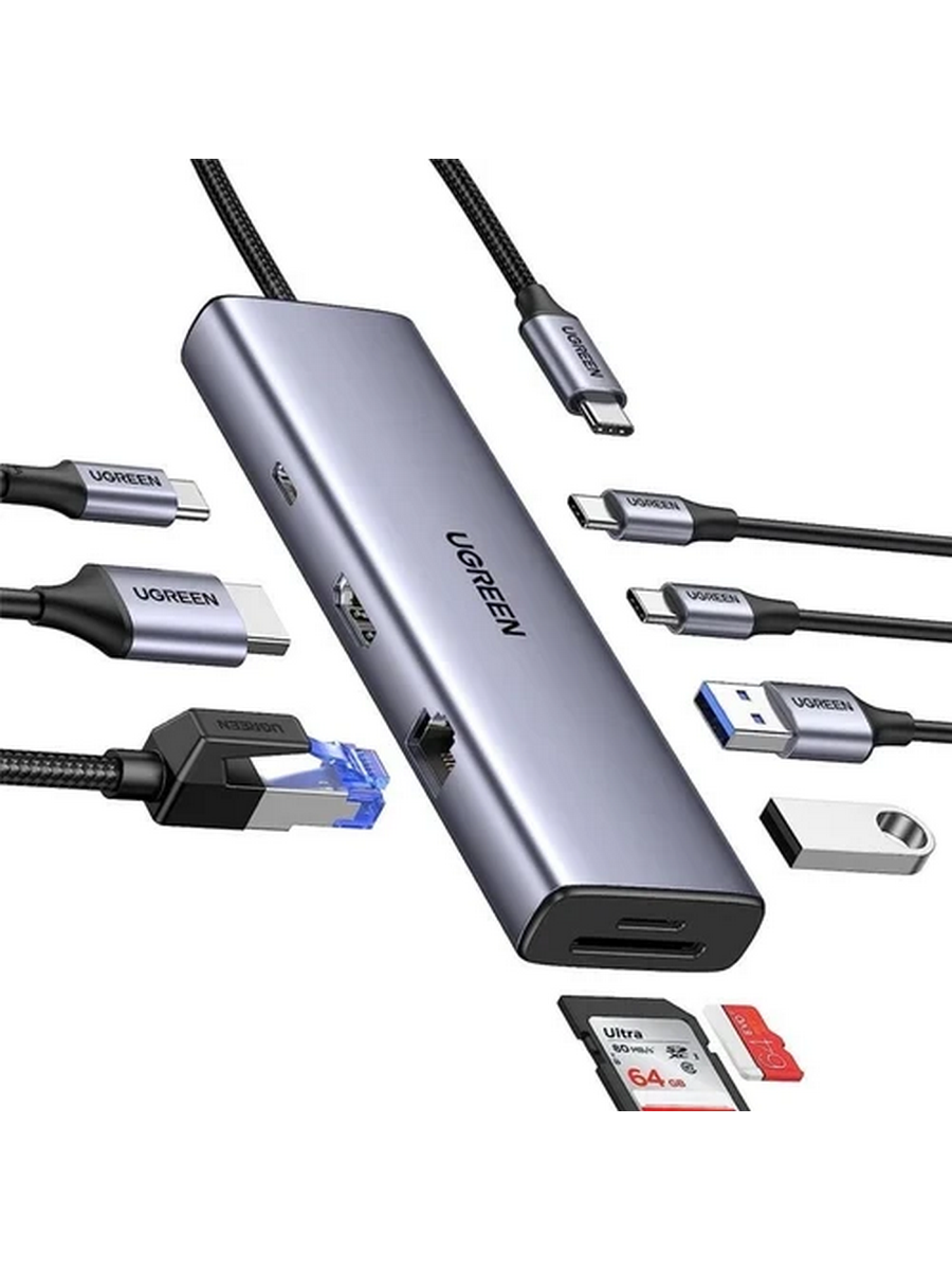 Универсальный USB разветвитель UGREEN CM498 служит многофункциональным решением для расширения возможностей современных гаджетов. Данная модель преобразует единственный порт USB-C в девять полноценных интерфейсов, включая HDMI с поддержкой 8K, гигабитный Ethernet и слоты для карт памяти. Такой функционал особенно ценен для владельцев ультрабуков и планшетов с минимальным количеством разъемов.
