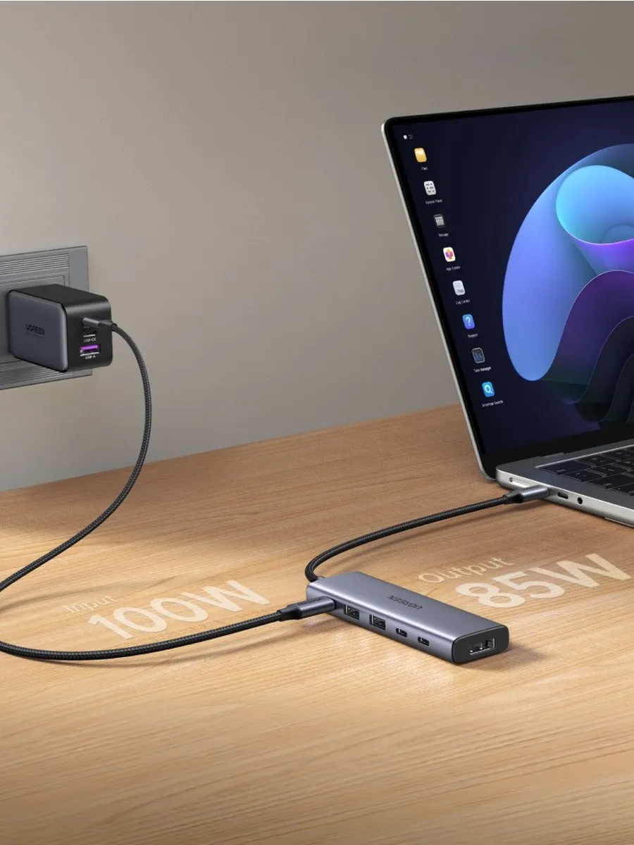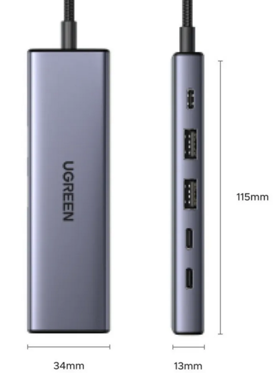 Превратите портативный компьютер в полноценную рабочую станцию с помощью компактной и мощной док-станции UGREEN CM511. Этот аксессуар, выполненный в элегантном сером цвете и прочном металлическом корпусе, станет идеальным центром управления для вашего устройства, обеспечивая все необходимые подключения через один единственный кабель.