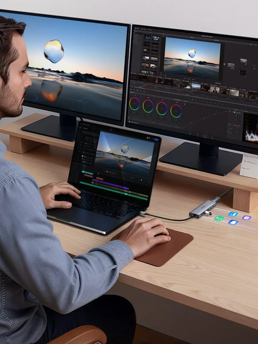 Сердцем мультимедийных возможностей док-станции является видеовыход DisplayPort версии 1.4. Он позволяет вывести изображение на один внешний монитор с невероятной детализацией — поддерживается максимальное разрешение 4K, то есть 2160p, с комфортной частотой обновления 60 Герц. Это значит, что вы сможете наслаждаться кристально чёткой картинкой, будь то работа со сложными графическими проектами, просмотр фильмов или играми.