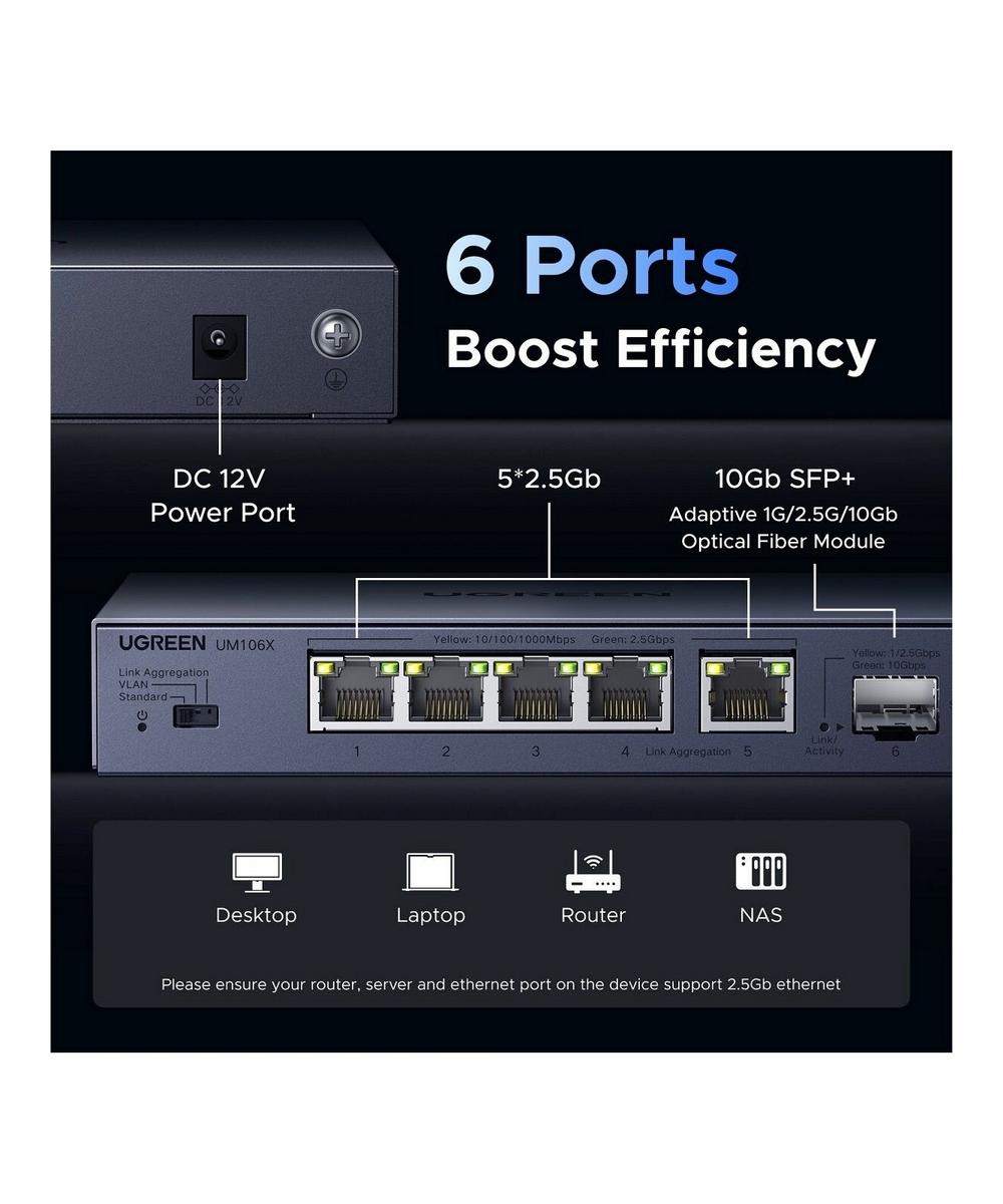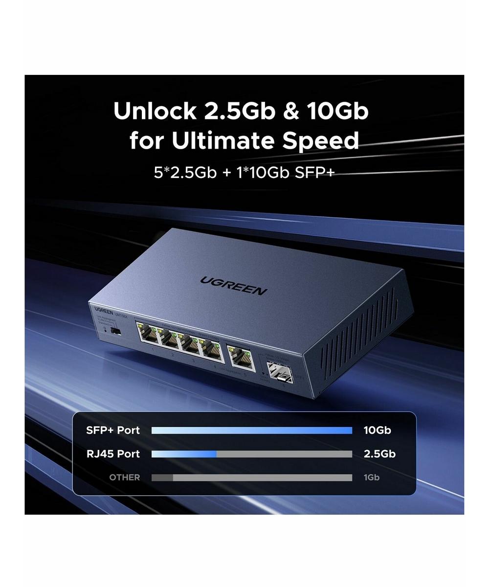 Коммутатор сетевой UGREEN CM753 (35048EU) 6-Port 5*Ethernet 2.5G& 1*SFP 2.5G Ethernet серый космос