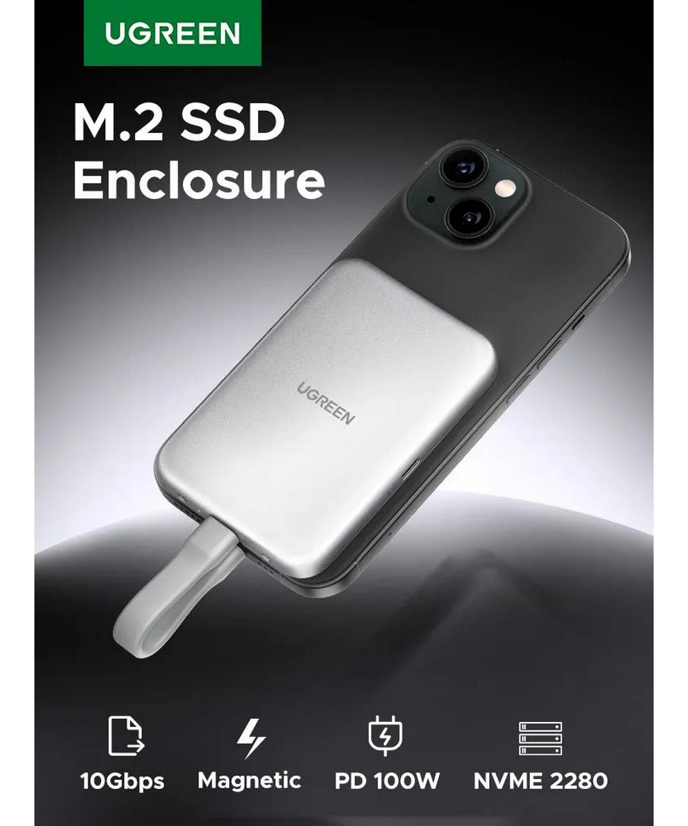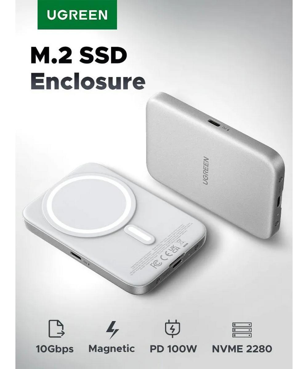 Бокс внешний для жесткого диска UGREEN D619 (55151) Magnetic M.2 NVMe SSD Enclosure 10Gbps. Цвет: серебристый