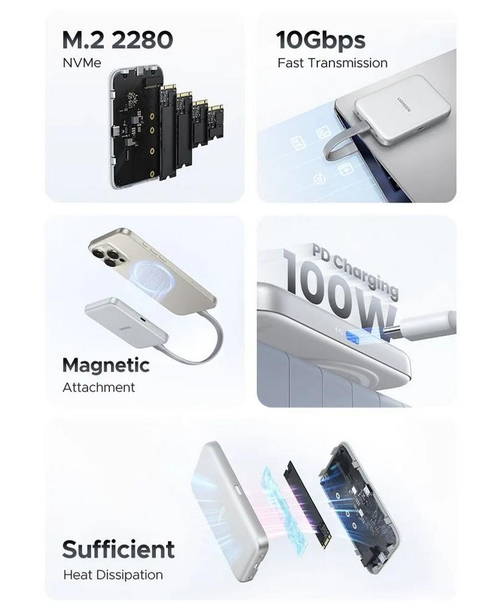 Бокс внешний для жесткого диска UGREEN D619 55151 Magnetic M2 NVMe SSD Enclosure 10Gbps