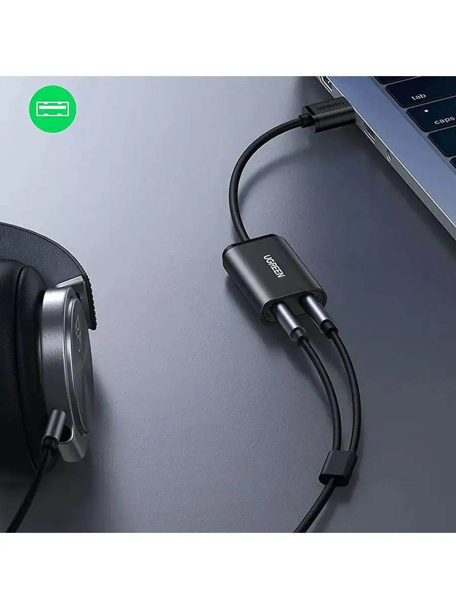 Подключение наушников, гарнитур, колонок и микрофонов с разъёмом 3,5 мм через USB.