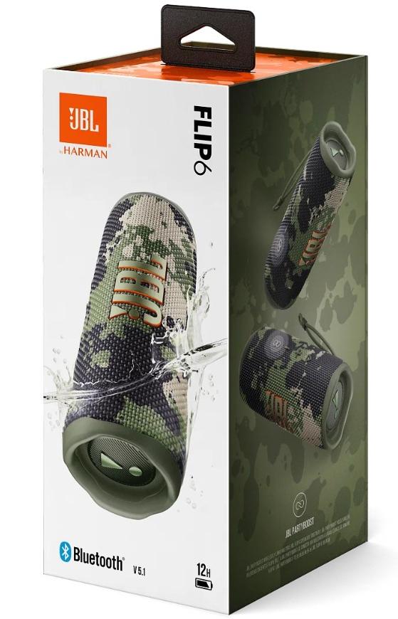 Портативная колонка JBL Flip 6 позволит получать удовольствие от громкого, чистого и мощного звука. Динамик выходной мощностью 30 Вт в сочетании с сабвуфером передает насыщенный детализированный звук. Для достижения глубоких низких частот в колонке установлены два оптимизированных пассивных радиатора на основе технологии от Harman. Синхронизация с мобильными устройствами осуществляется по беспроводной технологии Bluetooth. Корпус колонки надежно защищен от воздействия влаги и пыли по стандарту IPX7. Энергоемкий аккумулятор емкостью 4800 мА*ч гарантирует продолжительное время автономной работы JBL Flip 6 – до 12 часов.