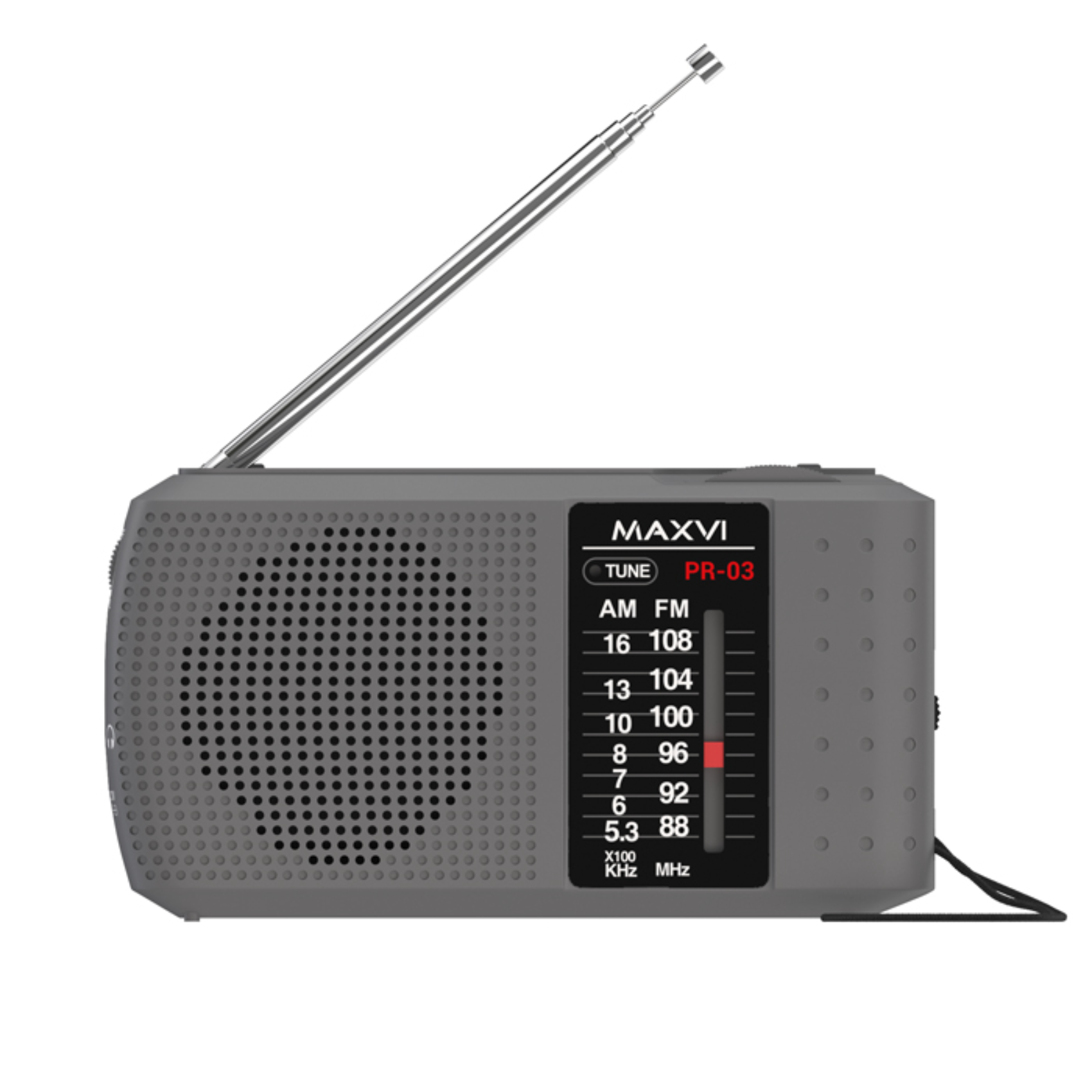 Портативный приёмник Maxvi PR-03 с аналоговым выбором частоты обеспечивает прослушивание радиостанций, вещающих в частотных диапазонах FM и AM. Работает как от сети переменного тока, так и от пальчиковых батареек (АА)(В комплект не входят). К Maxvi PR-03 можно подключить наушники (разъем 3,5 mini-jack).