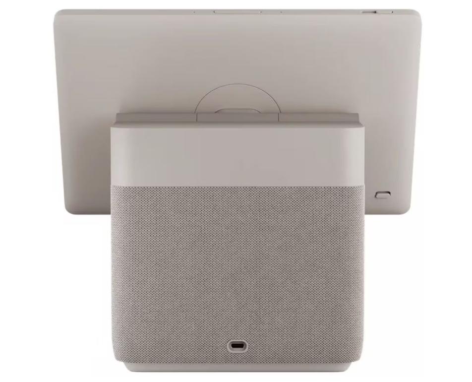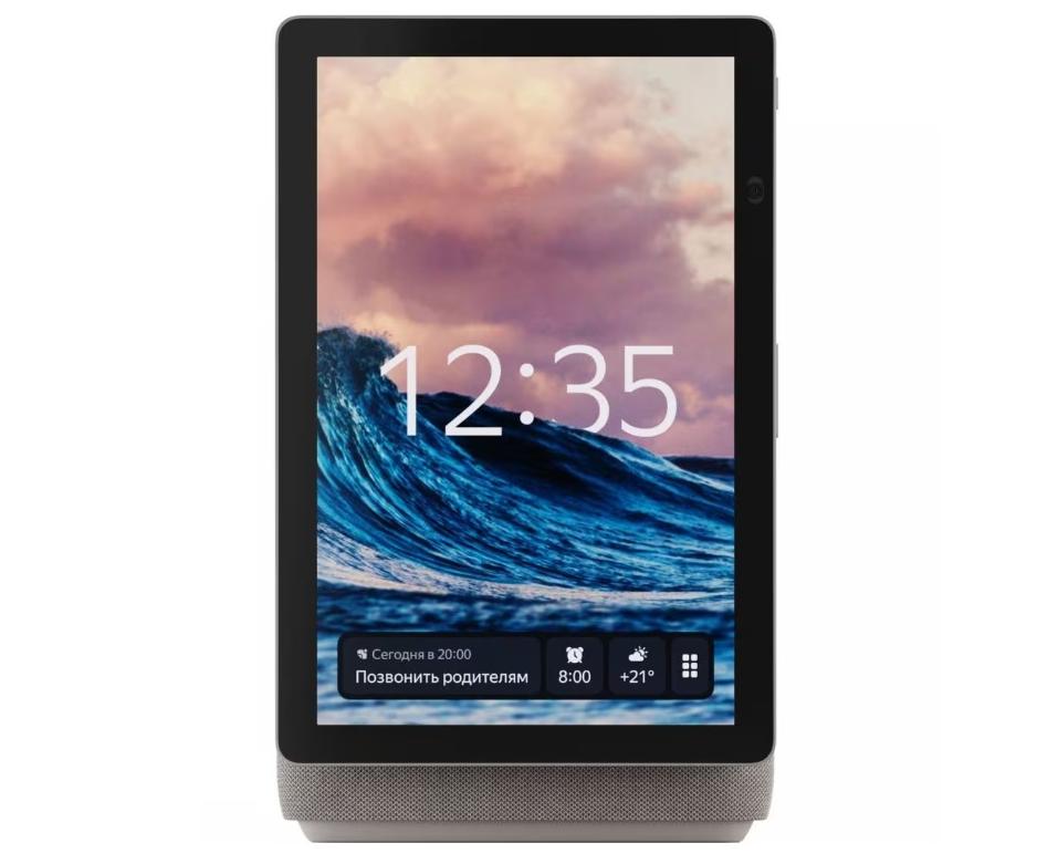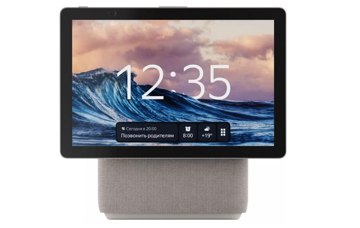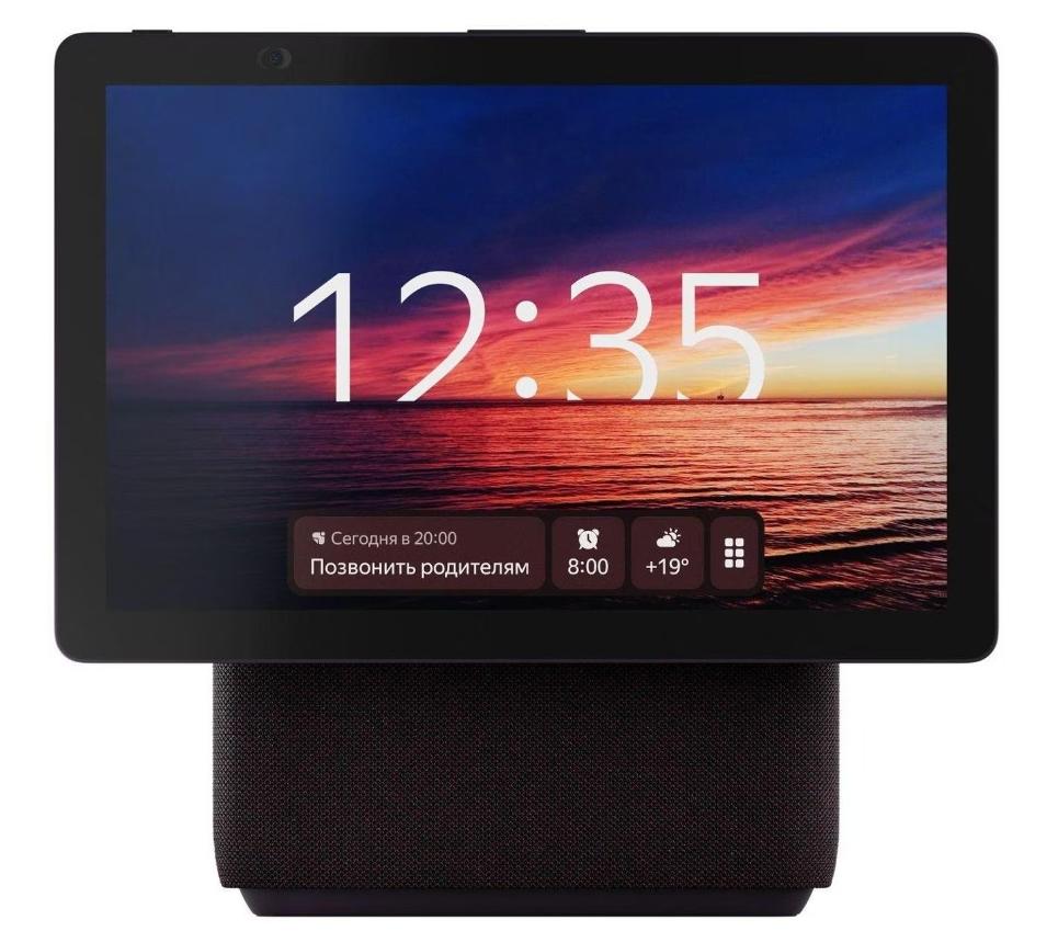 Устройство оборудовано камерой на 13 Мп с углом обзора 120°, которую можно применять при совершении видеозвонков. Во время общения модель можно разместить в вертикальном и горизонтальном положении. Специальная защитная шторка дает возможность закрывать камеру. Интегрированная LED-подсветка корпуса выполняет декоративную функцию.