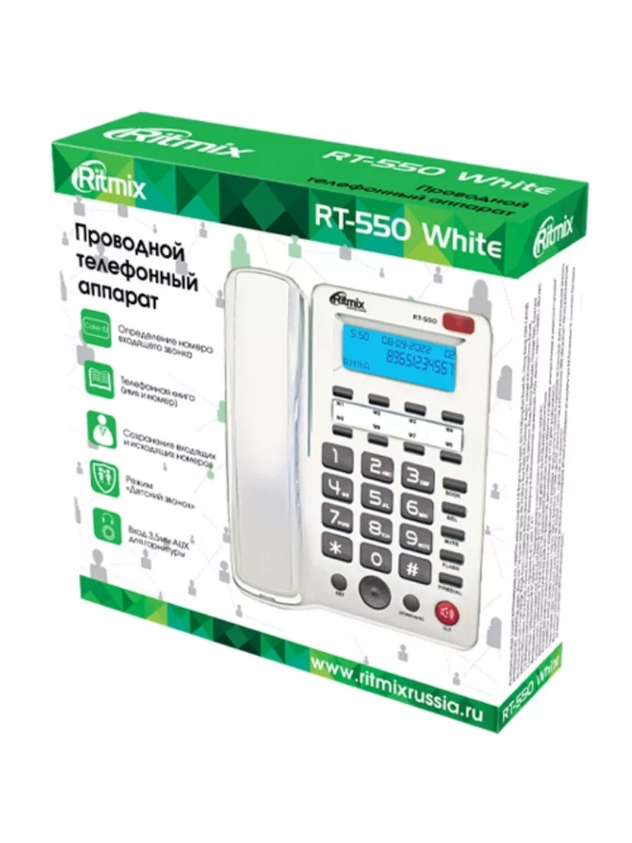 Телефонный аппарат RT-550 имеет крупный световой индикатор входящего звонка. Также есть световой индикатор активного соединения с телефонной линией и световая индикация пропущенных звонков.