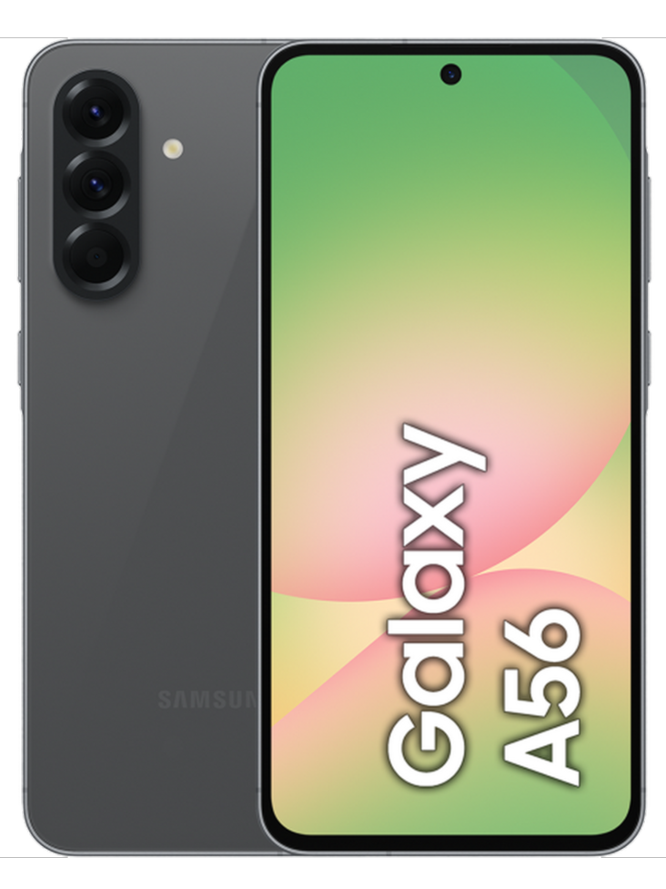 Смартфон Samsung Galaxy A56 5G с многофункциональной камерой, мощным процессором и функциями искусственного интеллекта сочетает в себе современный дизайн в сером цвете и широкие возможности.
