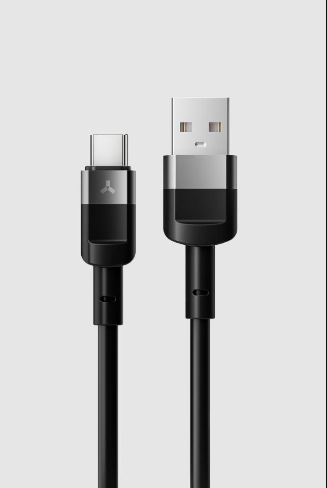 Классический провод из TPU пластика (термопластичный полиуретан). Этот материал отличается хорошей эластичностью и не ломается при многочисленных перегибах. Пластиковые коннекторы имеют удлиненный кабельный ввод и оснащены алюминиевым наконечником для защиты коннектора от повреждений. Провод оснащен eMarker чипом, благодаря чему поддерживает быструю зарядку до 5А и стандарт USB 3.0.
