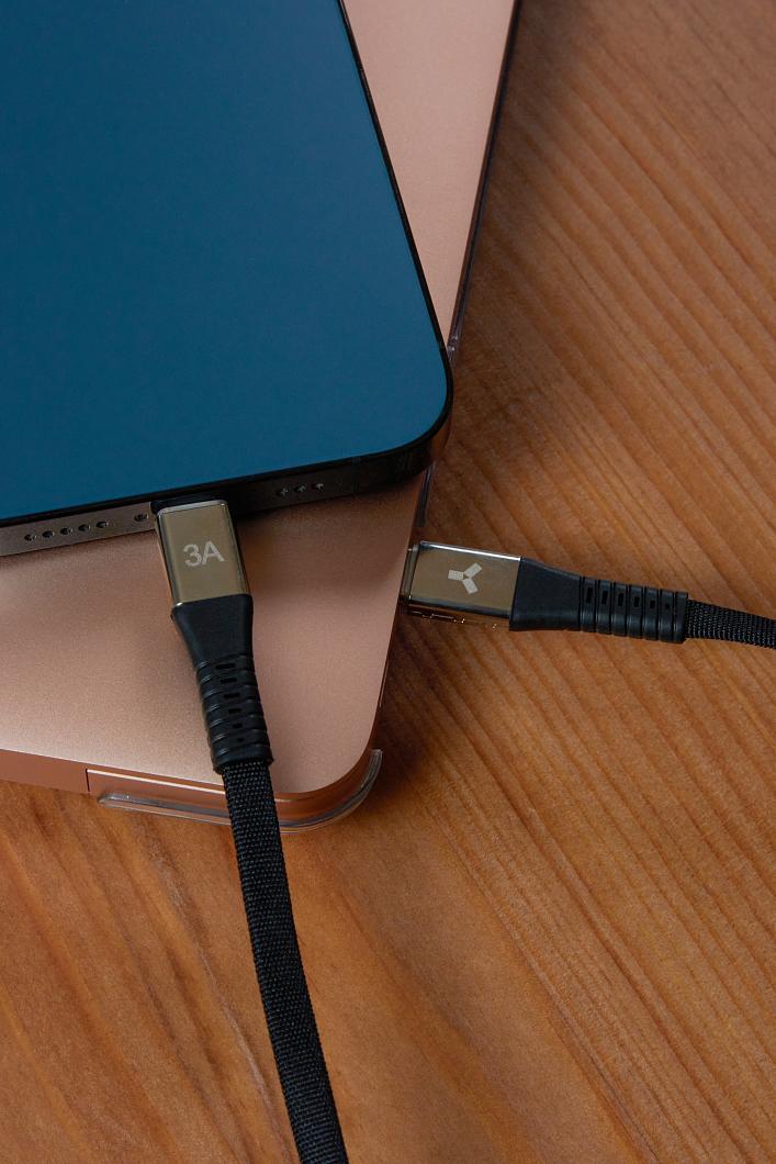 Зарядный провод в износостойкой тканевой оплетке специального плетения, с коннекторами из нержавеющей стали и удлинённым прочным кабельным вводом из пластика. Все вместе делает этот провод более прочным и износостойким. Такой провод прослужит долго и верно своему владельцу.