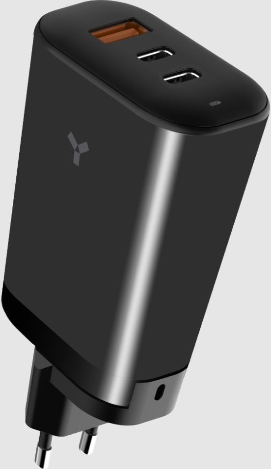 Зарядное устройство оснащено тремя портами: классическим USB и двумя современными Type-C, которые обеспечивают мощность зарядки до 65 Вт на высокой скорости. Возможно подключение сразу трех устройств с использованием всех портов одновременно с поддержкой быстрой зарядки без потери мощности и скорости работы устройства.