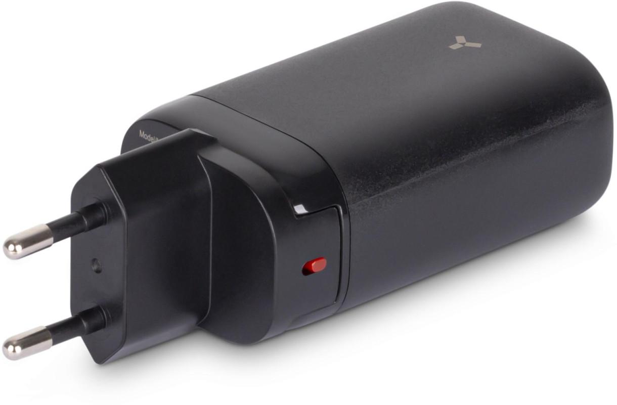 Протокол Power Delivery обеспечивает передачу мощности в 65 Вт, с напряжением до 20 Вт. Это позволяет не только быстро заряжать мобильные устройства, но и подавать питание на совместимую с этим стандартом технику, например, энергоемкие планшеты и мощные ноутбуки. Модель зарядит аккумулятор ноутбука и послужит мобильным компактным блоком питания.