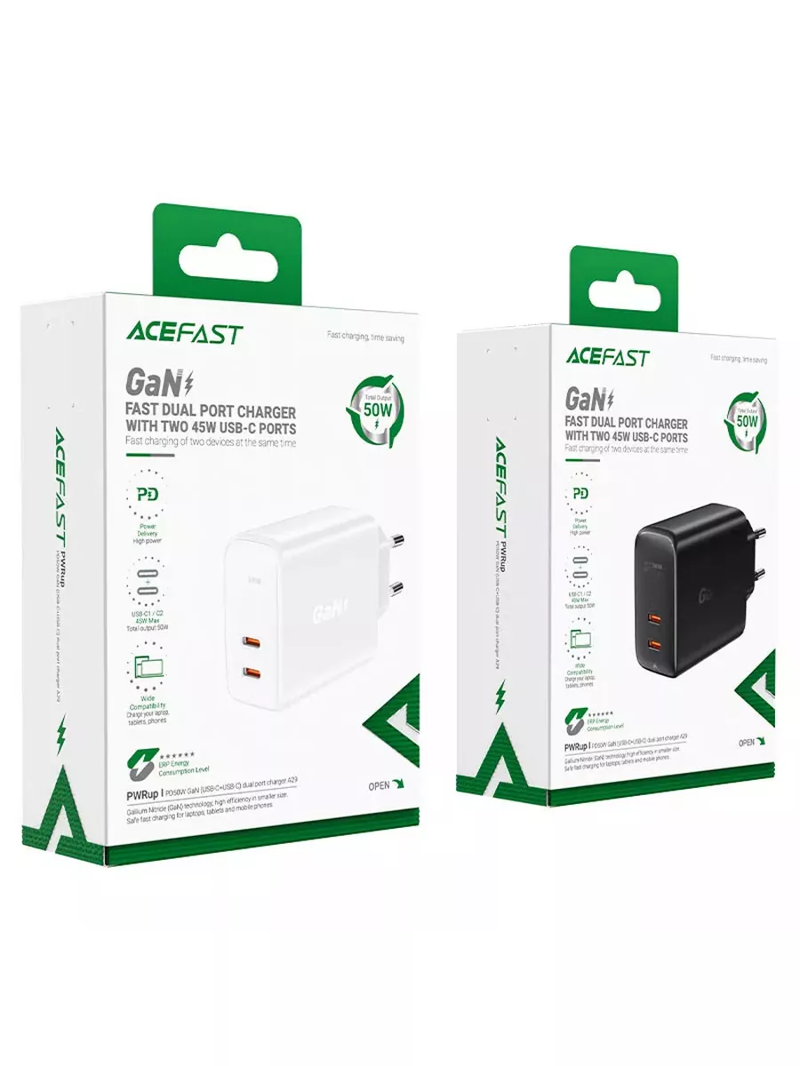 ACEFAST A29 — это практичное, эффективное, быстрое и надежное сетевое зарядное устройство. Изготовлен из прочного огнеупорного пластика. Защита от перегрева и короткого замыкания делает блок максимально безопасным для Ваших гаджетов. Оснащён 2 разъёмами USB Type-C. Максимальная выходная мощность составляет 50 Вт. Зарядное устройство поддерживает быструю зарядку различных протоколов, включая FCP, PD3.0, PPS, QC4.0, SCP, обеспечивает восстановление заряда батареи за короткое время.