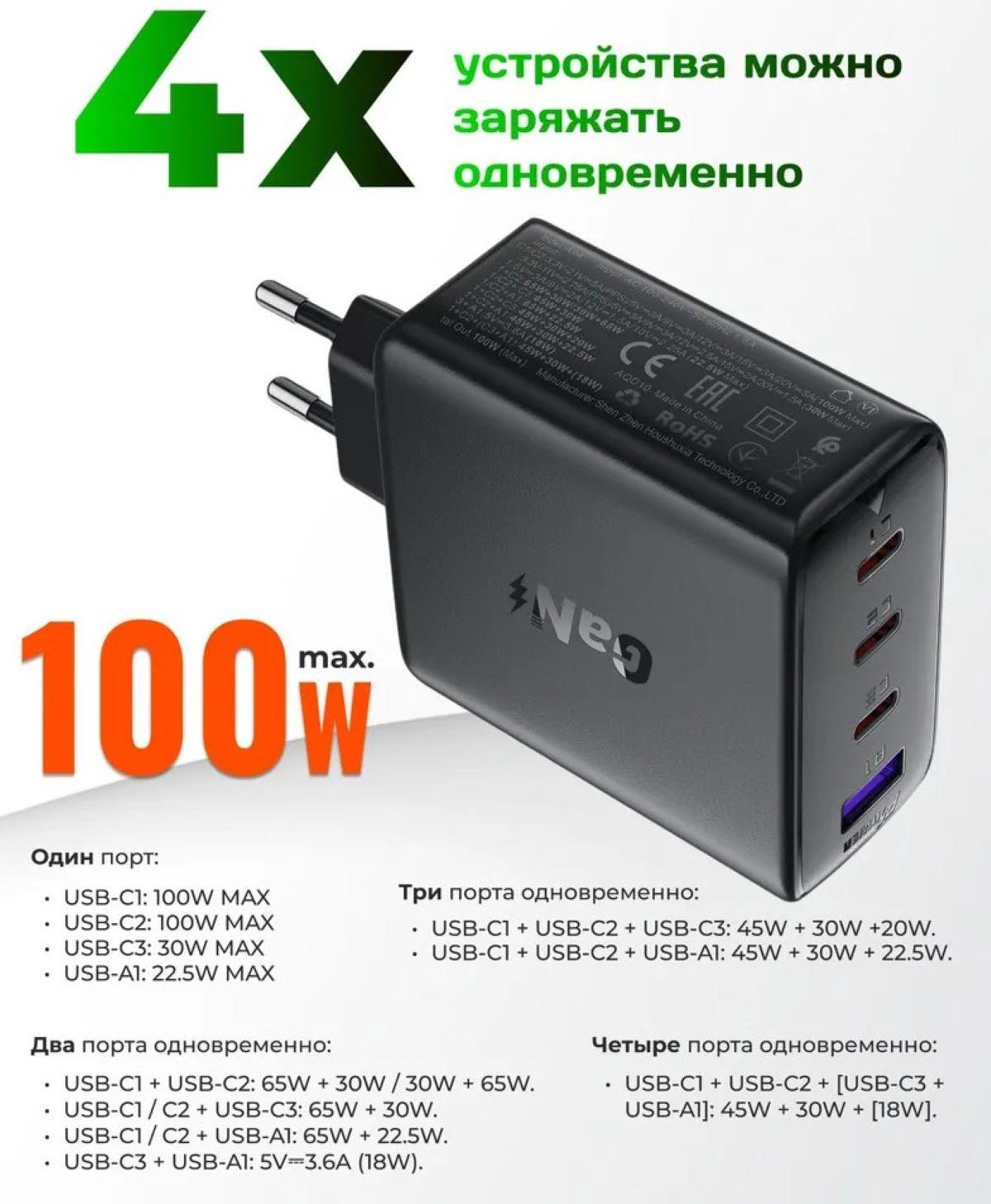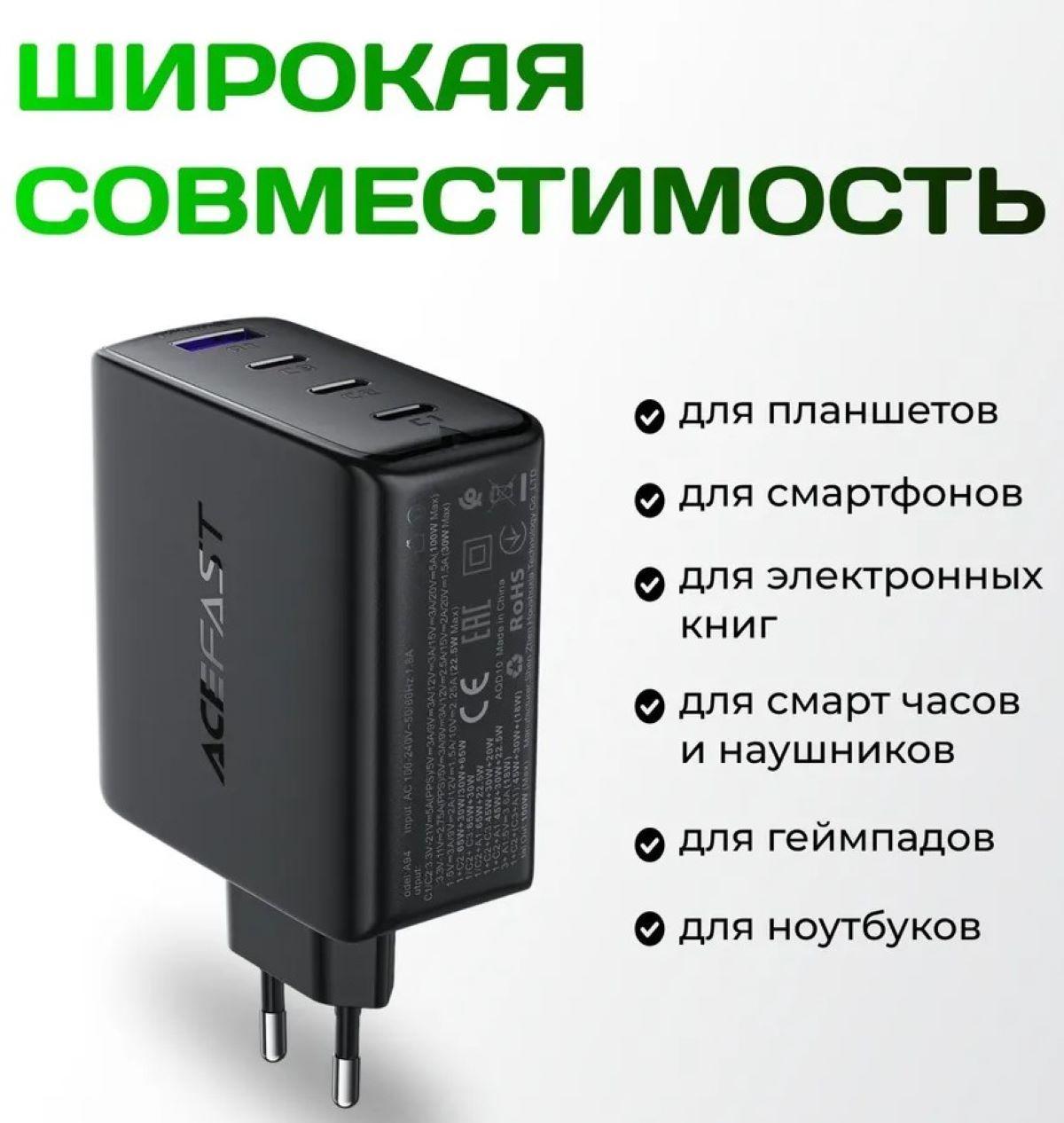 СЗУ ACEFAST A94 PD100W Gan 3*USB-C&USB-A Charger.