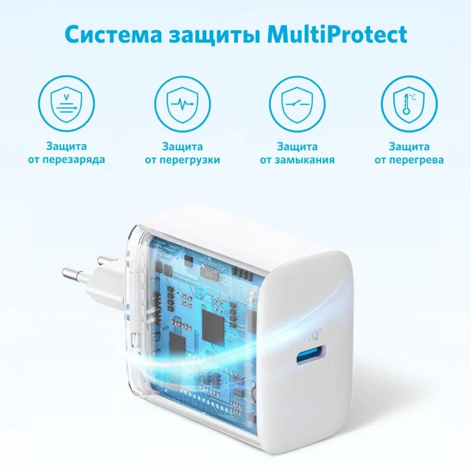 ANKER 312 USB-C 20W (A2347) с кабелем изготовлен из высококачественных материалов, обеспечивающих надежность и долговечность. Он также имеет встроенные механизмы защиты от перегрузки, короткого замыкания и перегрева, что гарантирует безопасность зарядки ваших устройств.