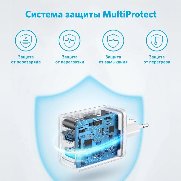 Безопасность: фирменная система MultiProtect компании Anker защищает от перегрузки, перегрева, замыкания, перезаряда батареи и других неприятностей.