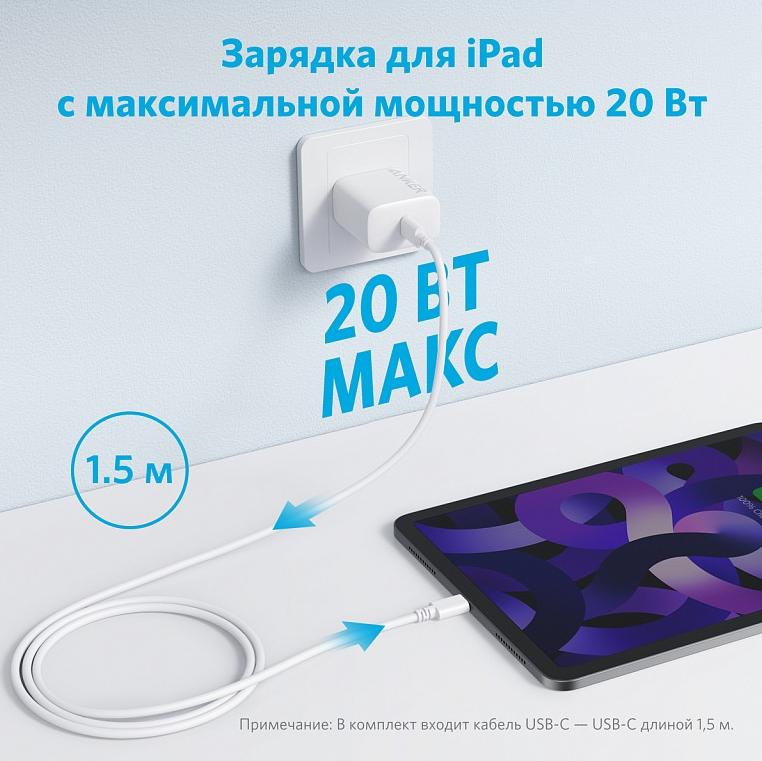 Полная совместимость с iPad: сетевое зарядное устройство Anker эффективно заряжает iPad.