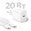 Комплект: сетевое зарядное устройство мощностью 20 Вт с 2 портами, инструкция, гарантия 12 месяцев. Кабель входит в комплект.