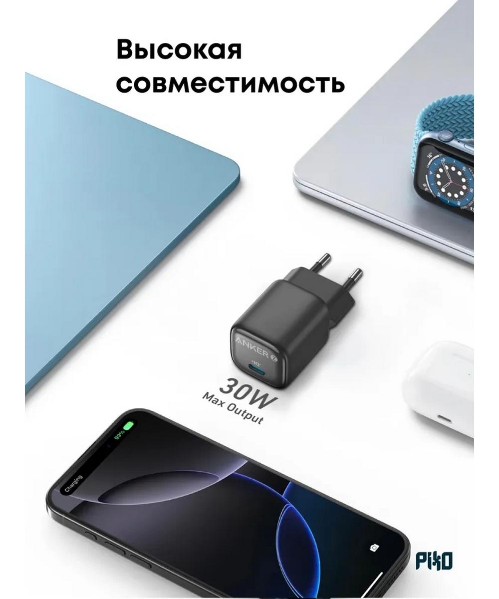 Эффективность : блок зарядки Anker оснащен портом USB-C с выдающейся выходной мощностью 30 Вт, позволяющей быстро заряжать смартфоны, планшеты и другие совместимые девайсы.