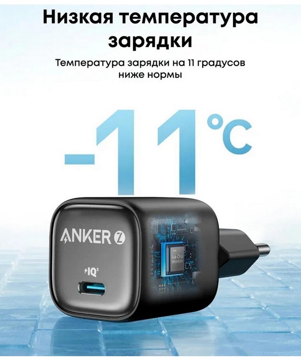 Надежность : блок Type-C Anker отличается безупречным управлением температурой – устройство поддерживает температуру на 13 °C ниже стандартных требований, устанавливая новые стандарты в технологии зарядки мощностью 30 Вт.