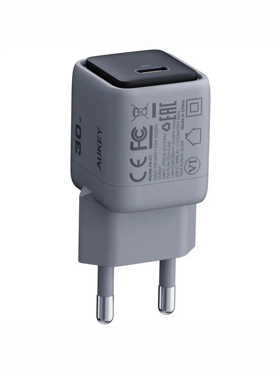Тип: сетевой. Максимальный выходной ток: 3 А. Выходное напряжение: 5, 9, 12, 15, 20 В. Мощность: 30 Вт. Максимальное входное напряжение: 240 В. Минимальное входное напряжение: 100 В. Интерфейсы. Количество портов: 1. Порт USB Type-С: 1. Дополнительные характеристики. Функция быстрой подзарядки: да. Технология быстрой зарядки: Adaptive Fast Charging, Huawei Fast Charge Protocol, Power Delivery 3.0, Quick Charge 3.0, Quick Charge 4.0+. Защита и безопасность. Защита от перегрева: да. Корпус. Цвет: серый. Материал корпуса: пластик.