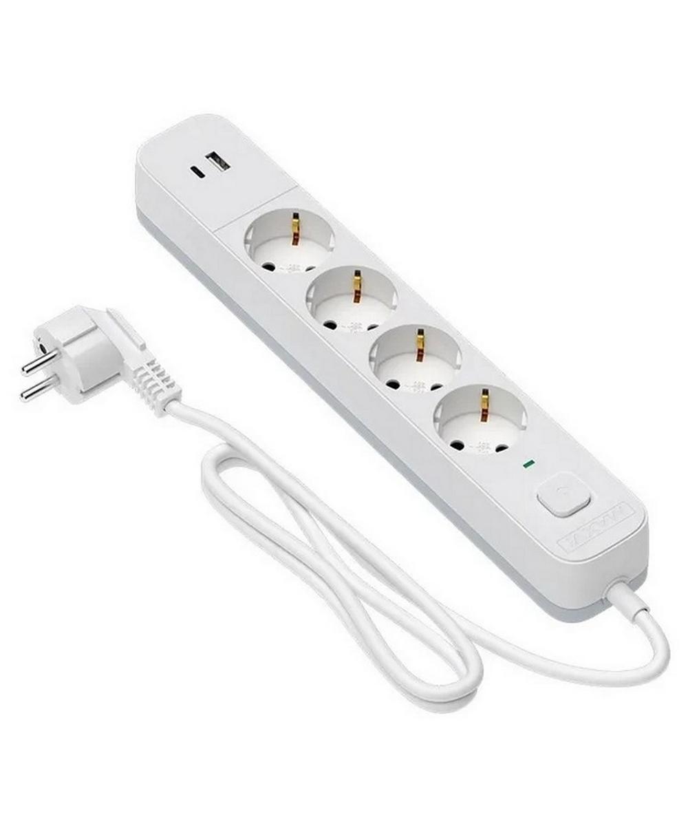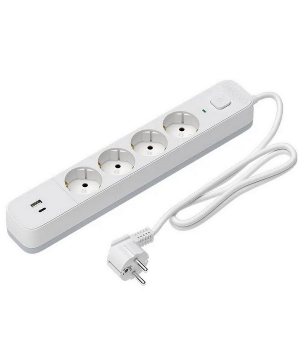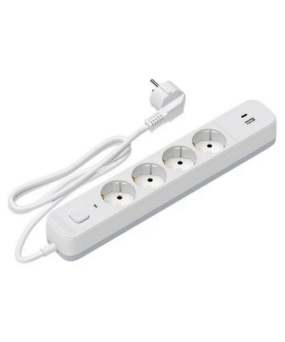 Сетевой фильтр MAXVI SP-330AС изготовлен в эргономическом корпусе, оснащен 4 евро розетками (тип F) с заземлением и выходами USB-A + USB-C, а также имеет встроенный общий выключатель, который позволяет быстро отключить питание всех подключенных устройств одним нажатием.
