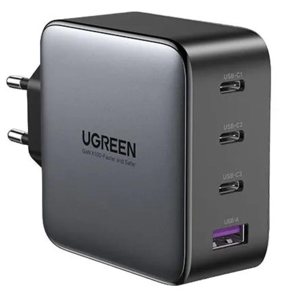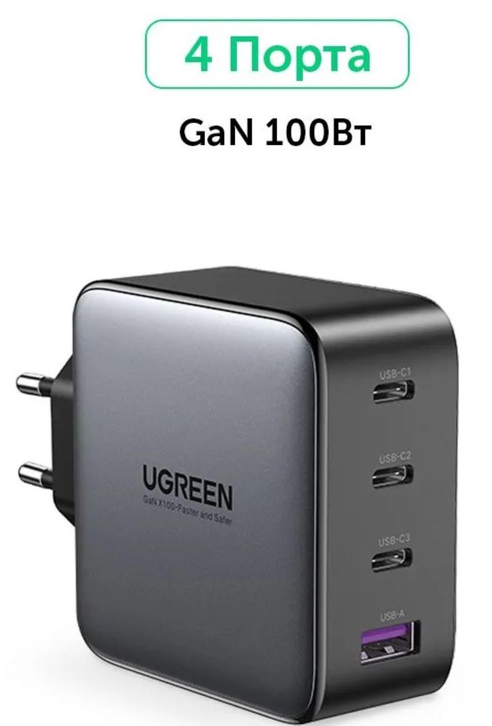 Сетевое зарядное устройство Ugreen CD226 (90575) USB-A+3*USB-C 100W GaN Fast Charger с кабелем 100W USB-C. Цвет: серый космос.