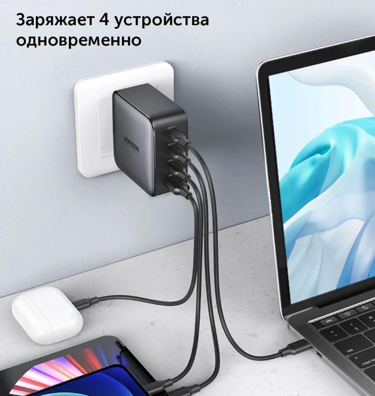 Зарядное устройство UGREEN CD226 (90575) с кабелем USB-C , USB-A+3*USB-C 100W GaN
