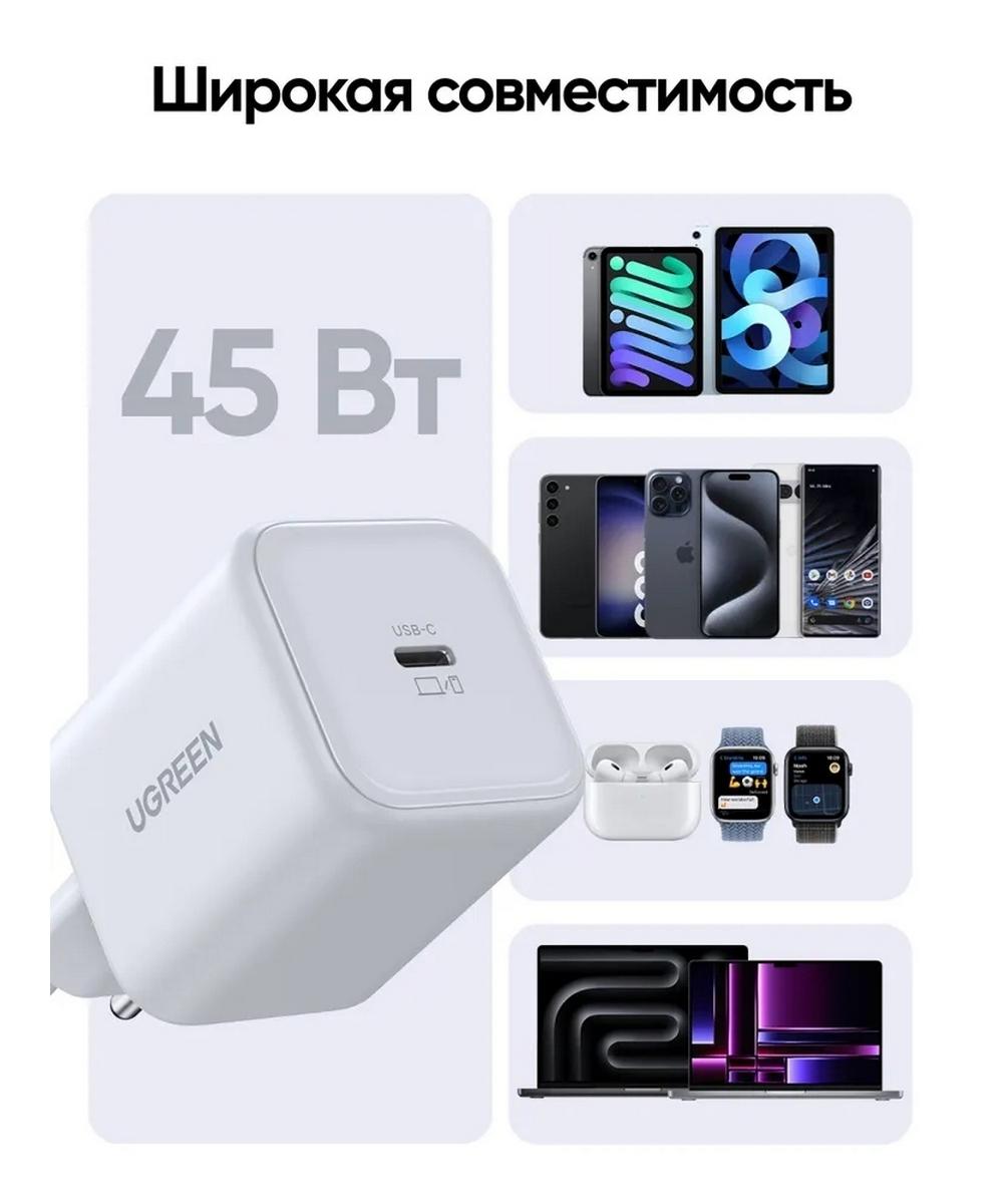 Сетевое зарядное устройство UGREEN X524 (65053) 45W USB-C GaN Fast Charger EU. Цвет: белый