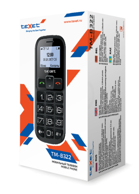 Сотовый телефон Texet TM-B322 придется по вкусу пользователям, отдающим предпочтение простоте и комфорту. В конструкции данной модели присутствует физическая клавиатура с кнопками достаточного размера, благодаря чему ее можно приобрести пожилому или плохо видящему человеку. Клавиши сделаны слегка выпуклыми для комфортного тактильного контакта, нанесенные на них цифры легко читаются. В интерфейсе устройства не составит труда разобраться любому пользователю, он легок в освоении и удобен в использовании.