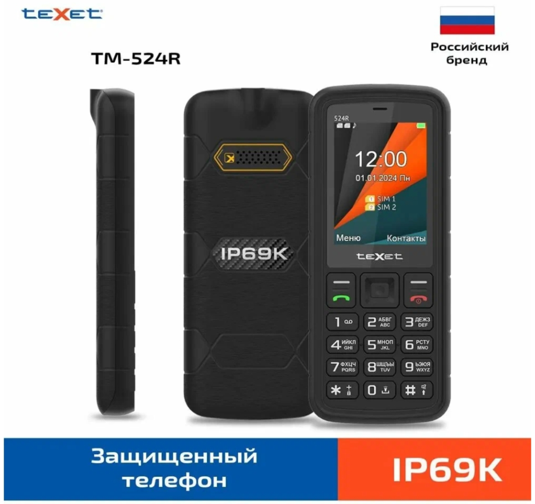 TM-524R - новое мобильное устройство в линейке защищённых телефонов. Телефон имеет стильный дизайн и выолнен в черно-оранжевом цвете. Устройство поддерживает 2G сети, 2SIM, а так же обладает всеми базовыми функциями полноценного мобильного устройства.