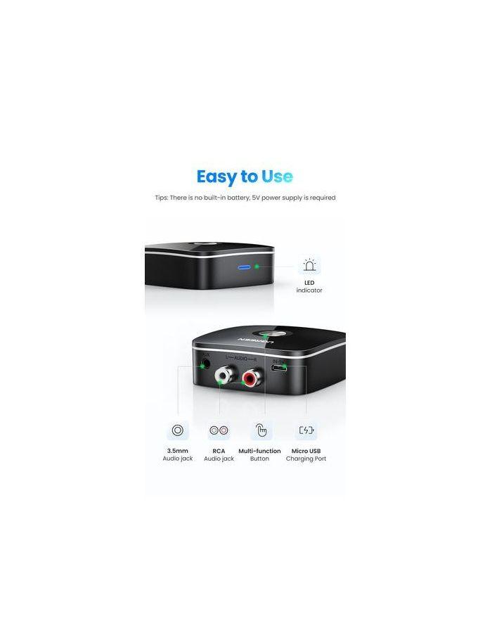 В адаптер встроен чип Bluetooth версии 5.1. Это обеспечивает качественный сигнал на расстояние до 10 м. Кроме того, в ресивере встроенный кодек aptX. Он минимизирует задержку при беспроводной передаче звука. Чтобы кодек работал, необходимо его наличие в обоих устройствах – передающем и принимающем. Адаптер работает как Bluetooth-приемник. Подключите его к обычным наушникам или колонкам – и они смогут принимать беспроводной сигнал. Ресивер питается от встроенного аккумулятора емкостью 200 мАч. Он работает до 8 часов в режиме воспроизведения. Чтобы зарядить адаптер вставьте кабель USB-MicroUSB в порт на торце и подключите к сети. Ресивер полностью заряжается за 2 часа. Кабель для зарядки идет в комплекте.