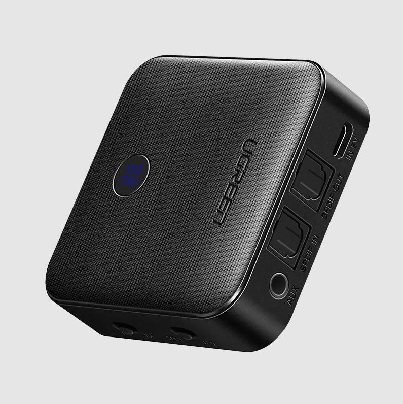 Адаптер UGREEN CM144 представляет собой устройство для подключения беспроводных устройств к аудиосистемам по Bluetooth 5.0. Оно может работать как в режиме приемника, так и в режиме передатчика, и в обоих режимах можно подключать несколько устройств одновременно (до двух): два смартфона для передачи аудио или пару беспроводных наушников. Для подключения источника или аудио системы к адаптеру можно воспользоваться разъемом jack 3.5 или оптическим S/PDIF. Заряжается UGREEN CM144 за три часа через порт micro-USB. При зарядке индикатор горит красным цветом, когда аккумулятор полностью заряжен цвет индикатора меняется на синий.