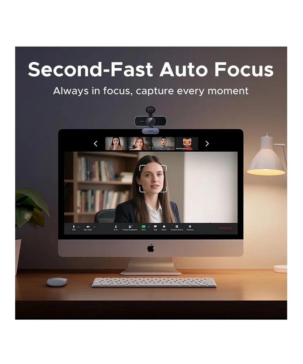 Автофокусировка PDAF и автоматическая регулировка освещенности: веб-камера для ПК оснащена фазовой автофокусировкой и отслеживает объекты на расстоянии от 1 до 5 метров для записи видео 4K без размытия.