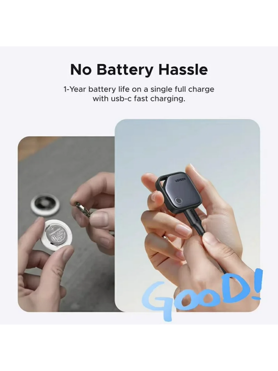Первый в мире с зарядкой через USB-C: Этот Bluetooth-трекер оснащен портом USB-C для удобной подзарядки. Полного заряда хватает на срок до 12 месяцев автономной работы, что полностью избавляет от переживаний о батарее.