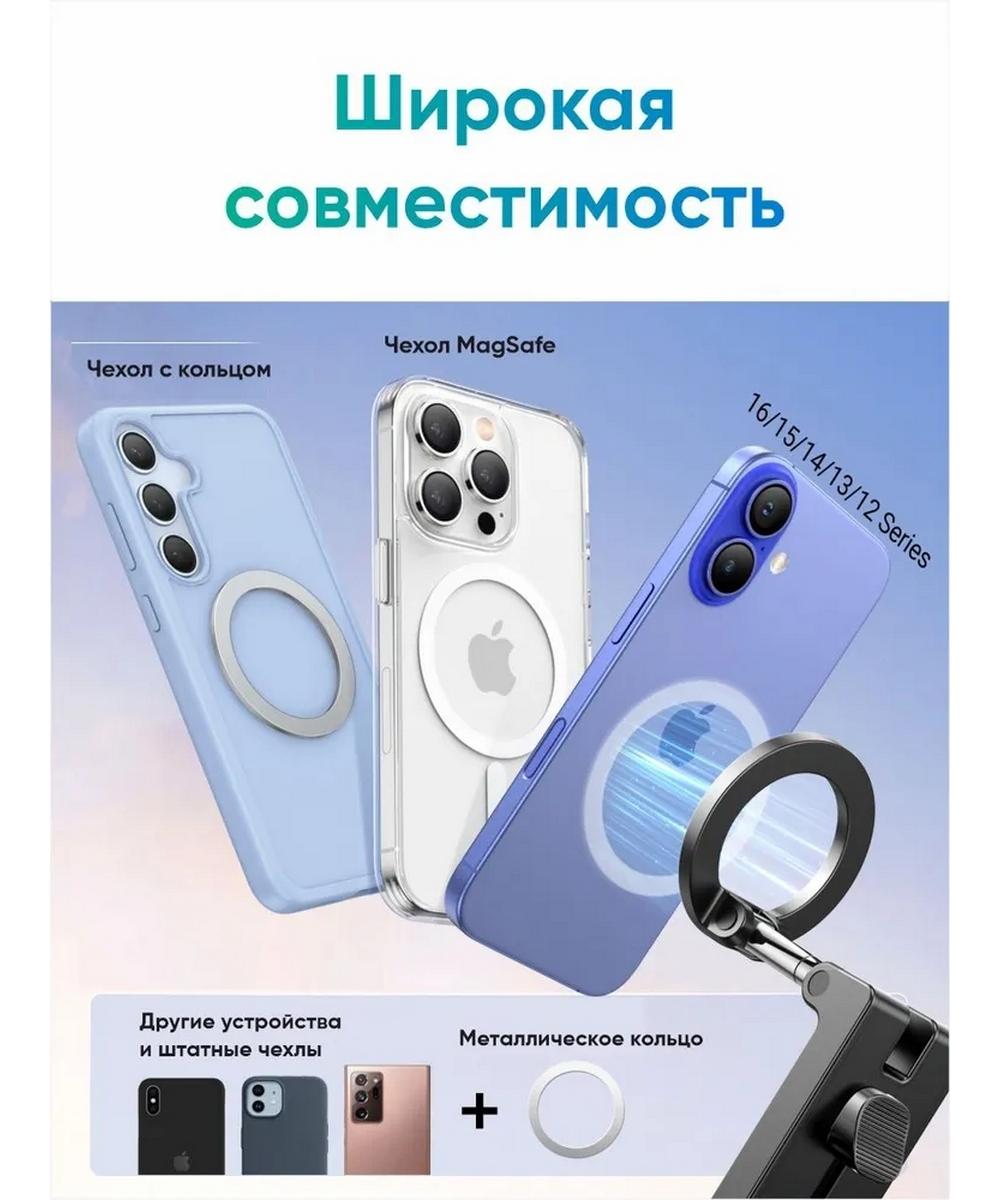Благодаря надежной магнитной конструкции, она обеспечивает прочную фиксацию устройства всего за долю секунды, исключая риск падения во время использования. Для устройств с диагональю от 4,7 до 7,2 дюймов.