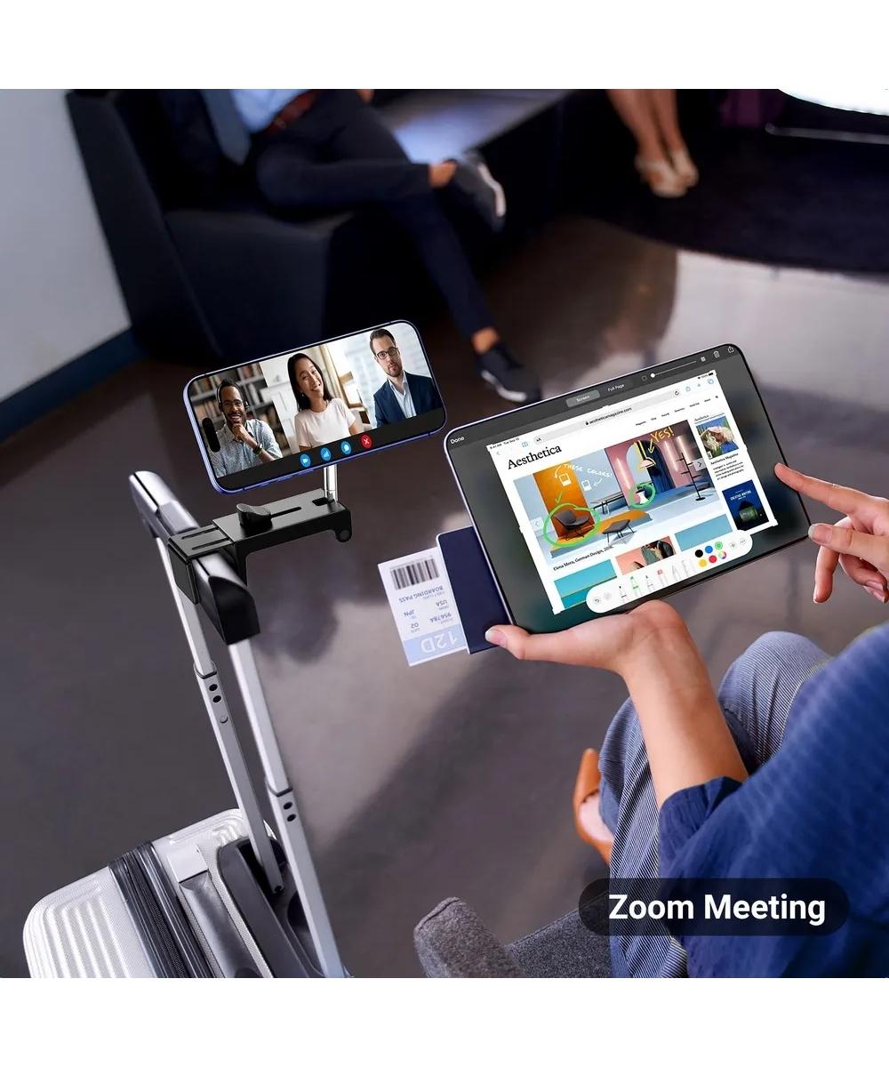 Компактный и легкий, он идеально подходит для путешествий, легко крепится на столы, ручки чемоданов и даже может использоваться в автомобиле или на рабочем столе.
