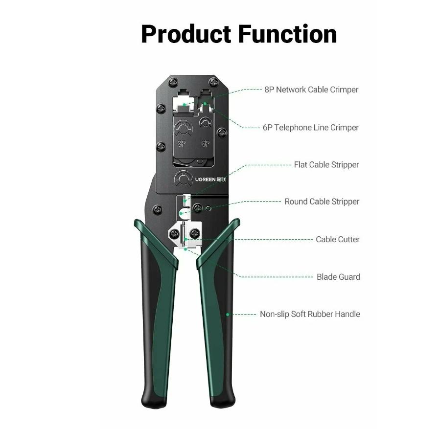 Обжимные клещи UGREEN NW136 (70683) - это незаменимый инструмент для профессионалов и любителей, занимающихся монтажом и обслуживанием телефонных и сетевых систем связи.