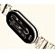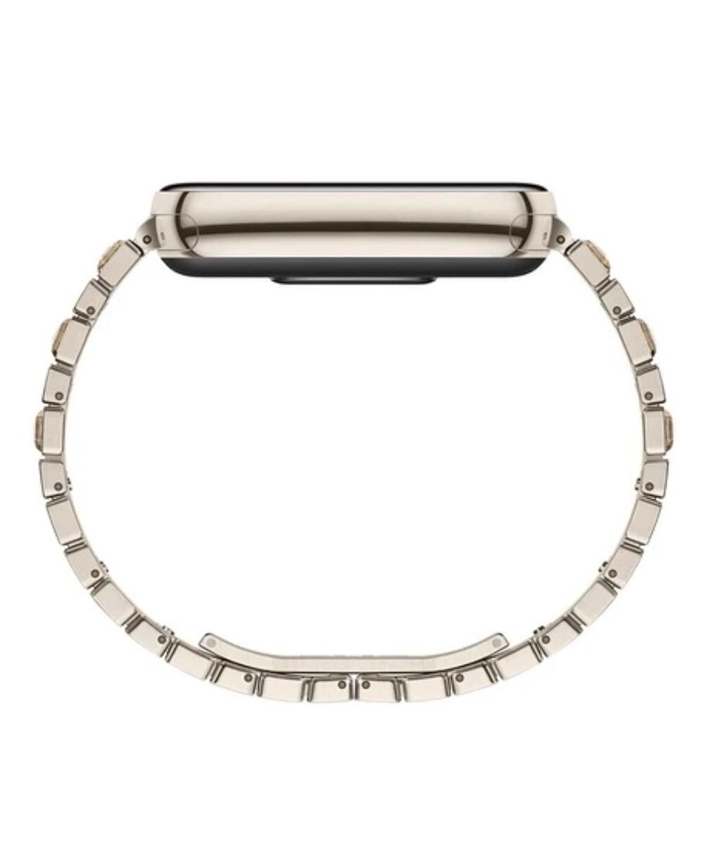 Ремешок браслета состоит из шести сегментов с кристаллической инкрустацией и скрытой застёжкой-бабочкой, обеспечивающей надёжную фиксацию и удобство в повседневной носке. Такое решение делает устройство гармоничным сочетанием технологий и высокой моды, выделяя его среди стандартных моделей фитнес-трекеров.