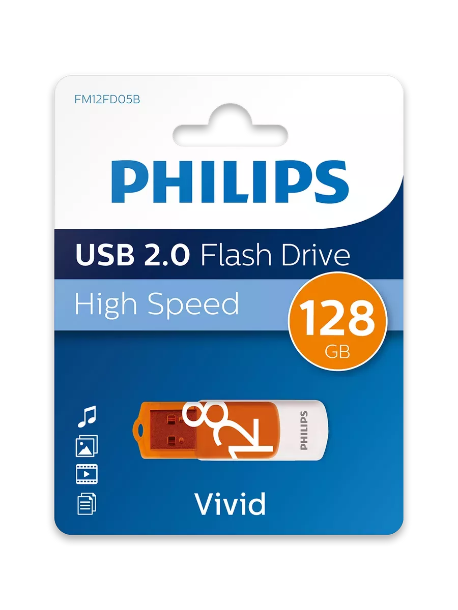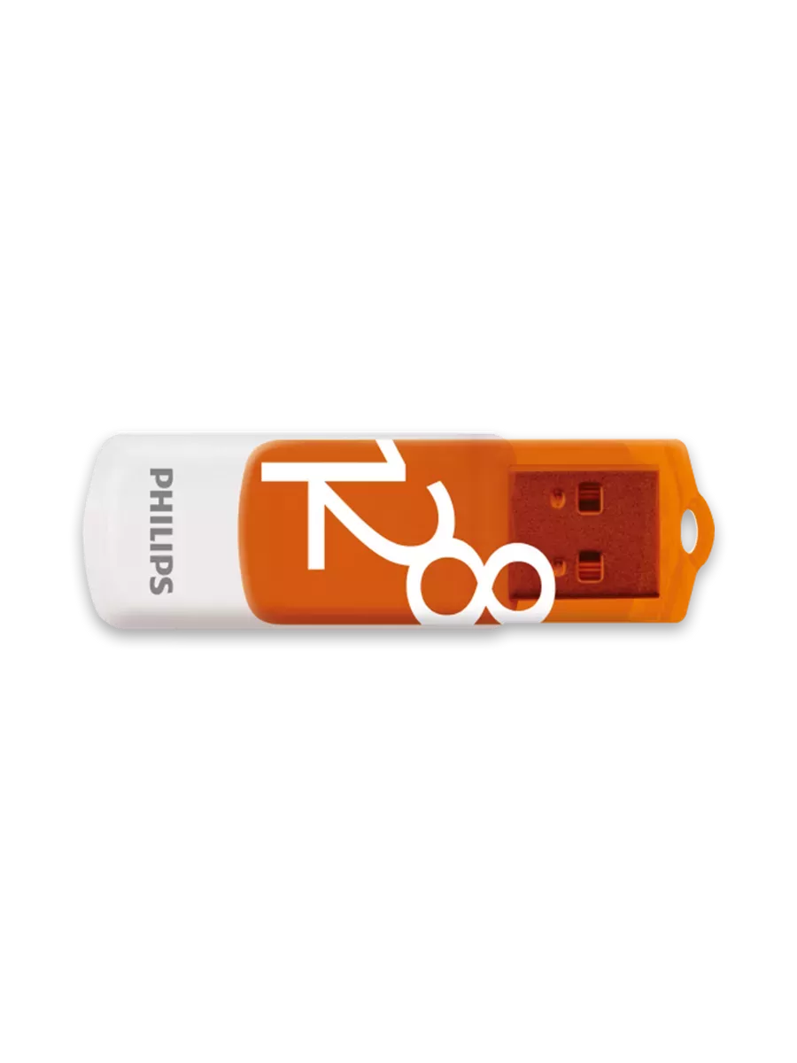 Оранжевый-белый дизайн накопителя PHILIPS VIVID не только привлекает внимание, но и делает его заметным на рабочем столе или в сумке. Яркий цвет накопителя поможет легко найти его среди других вещей.