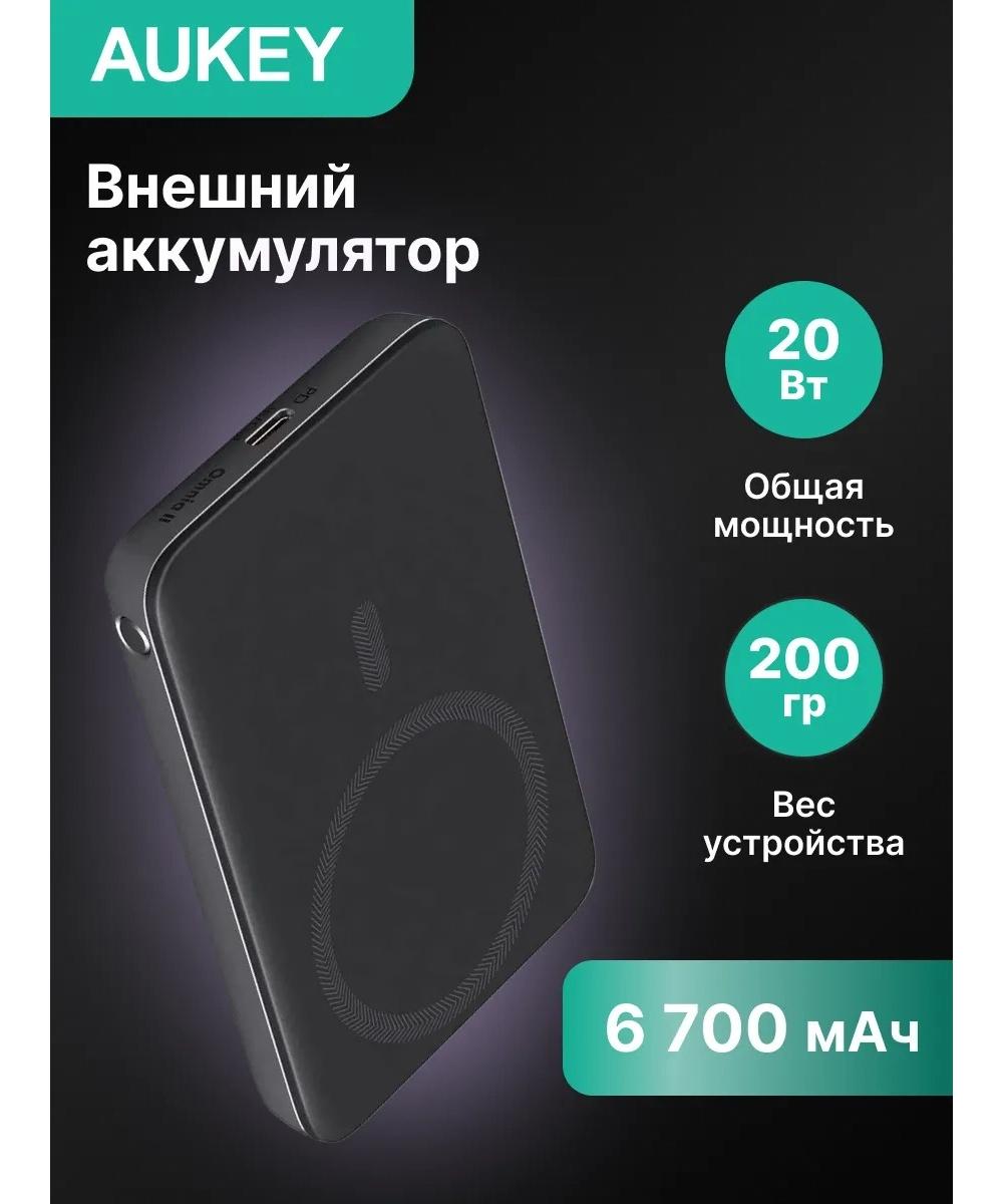 Внешний аккумулятор aukey Magnetic 2 6700 Qi2 — это надежный источник питания для ваших смартфонов и планшетов. Он оснащен технологией MagSafe для удобной и быстрой беспроводной зарядки, а также имеет USB Type-C порт для проводной зарядки.