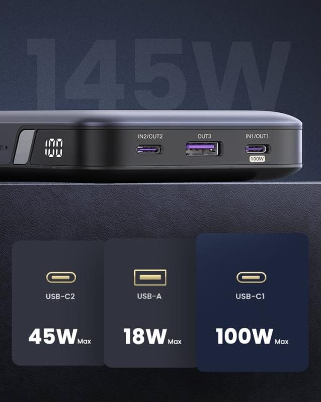 Последняя версия 2024 года. Максимальная мощность быстрой зарядки 145 Вт: благодаря новейшим технологиям PD 3.1 и QC 3.0+ этот блок питания для ноутбука может достигать сверхбыстрой скорости зарядки — общая мощность 145 Вт. Огромная емкость 25 000 мАч: блок питания UGREEN 25 000 мАч. Аккумулятор сверхвысокой емкости может работать 5-7 дней. срок службы батареи, подходит для путешествий, деловых поездок или других мероприятий на свежем воздухе и больше не беспокойтесь о внезапном отключении питания. Мощный вход 65 Вт, всегда в режиме ожидания: блок питания UGREEN с быстрой зарядкой можно полностью зарядить всего за 2 часа с помощью адаптера питания 65 Вт, что в 5 раз быстрее, чем обычные блоки питания. Вам не нужно ждать всю ночь. А информативный LED индикатор покажет уровень заряда. Максимальный ток 7,25А Совместим со всеми моделями - MacBook Pro 16", MacBook Pro M2 13" 2022, MacBook Air 13", HP Specter, Huawei MateBook, NoteBook, iPad Pro/ Air, Tab A8/S8; iPhone 14 / iPhone 14 Pro / iPhone 14 Pro Max / iPhone 13 / iPhone 13 Pro / iPhone 13 Pro Max / iPhone 12 / 12Pro /12 Mini /11 / SE 2022/2020, AirPods Pro, MagSafe and Galaxy S23 Ultra/ S22/ S21 /S10 / Note 10, Pixel 7 Pro, Pixel 6, Pixel 5, Pixel 4, etc.