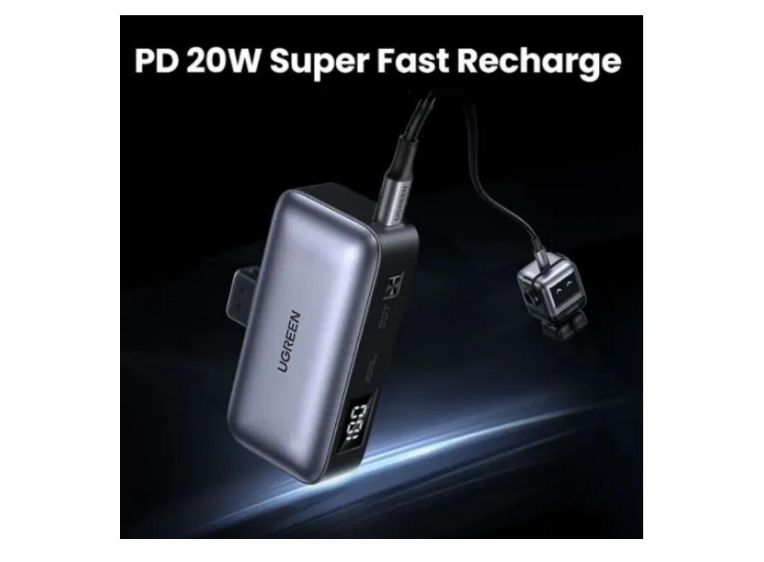 Внешний аккумулятор UGREEN PB503 емкостью 5000 mAh оснащен 1 разъёмом USB C и встроенным штекером USB-C, что позволяет подключить к нему одновременно два устройства и не беспокоиться об их безопасности.