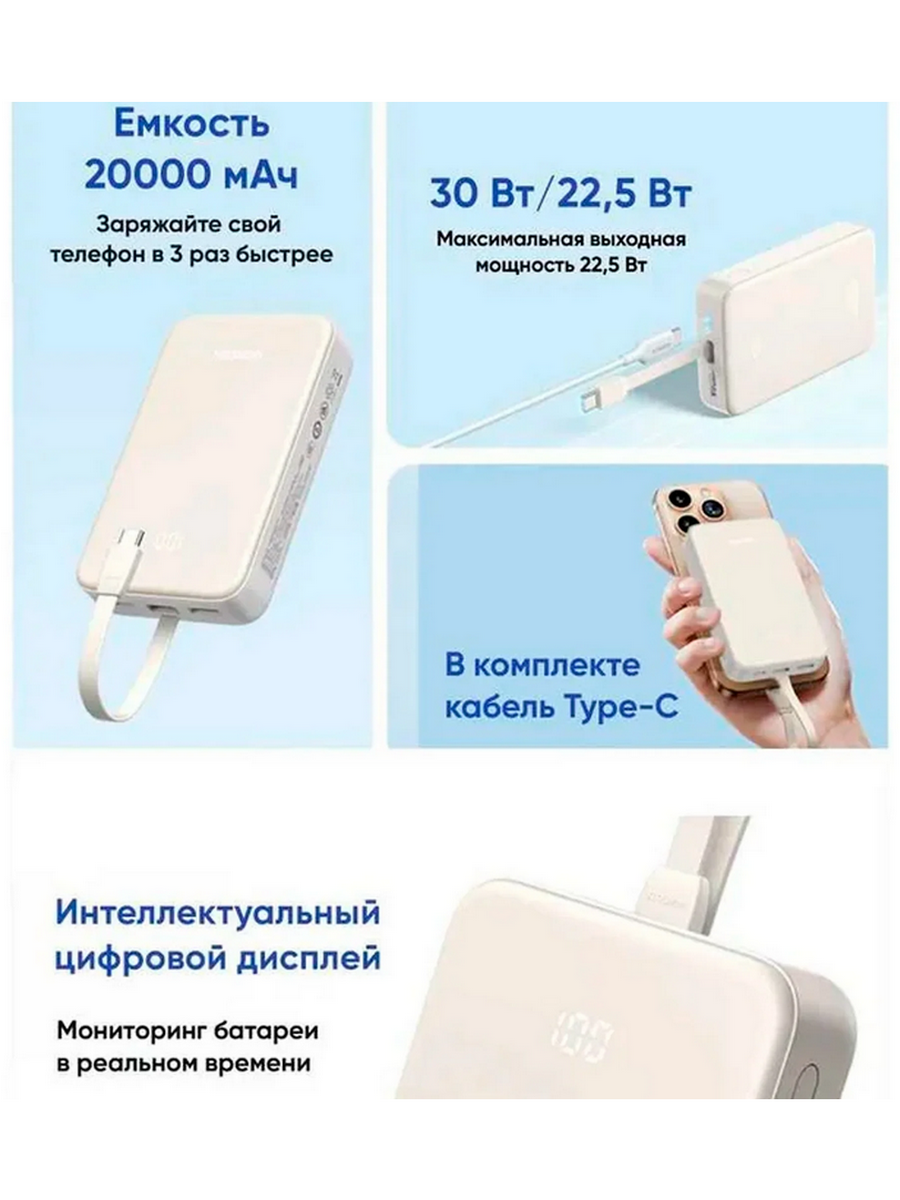 Оснащенный полимерным литий-ионным аккумулятором емкостью 20000 мАч, он обеспечивает длительное время автономной работы и позволяет заряжать несколько устройств одновременно.