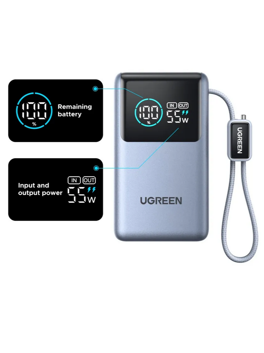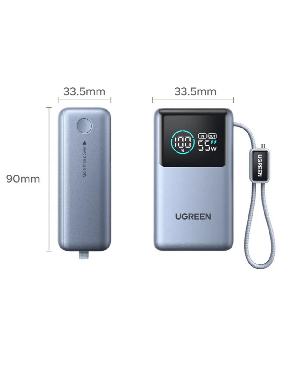UGREEN PB727 — это мощный и невероятно компактный внешний аккумулятор нового поколения из серии EnergyPal Pro Mini (или Nexode Pro). Устройство сочетает в себе высокую выходную мощность и карманный формат, что делает его идеальным спутником для владельцев современных смартфонов и планшетов.