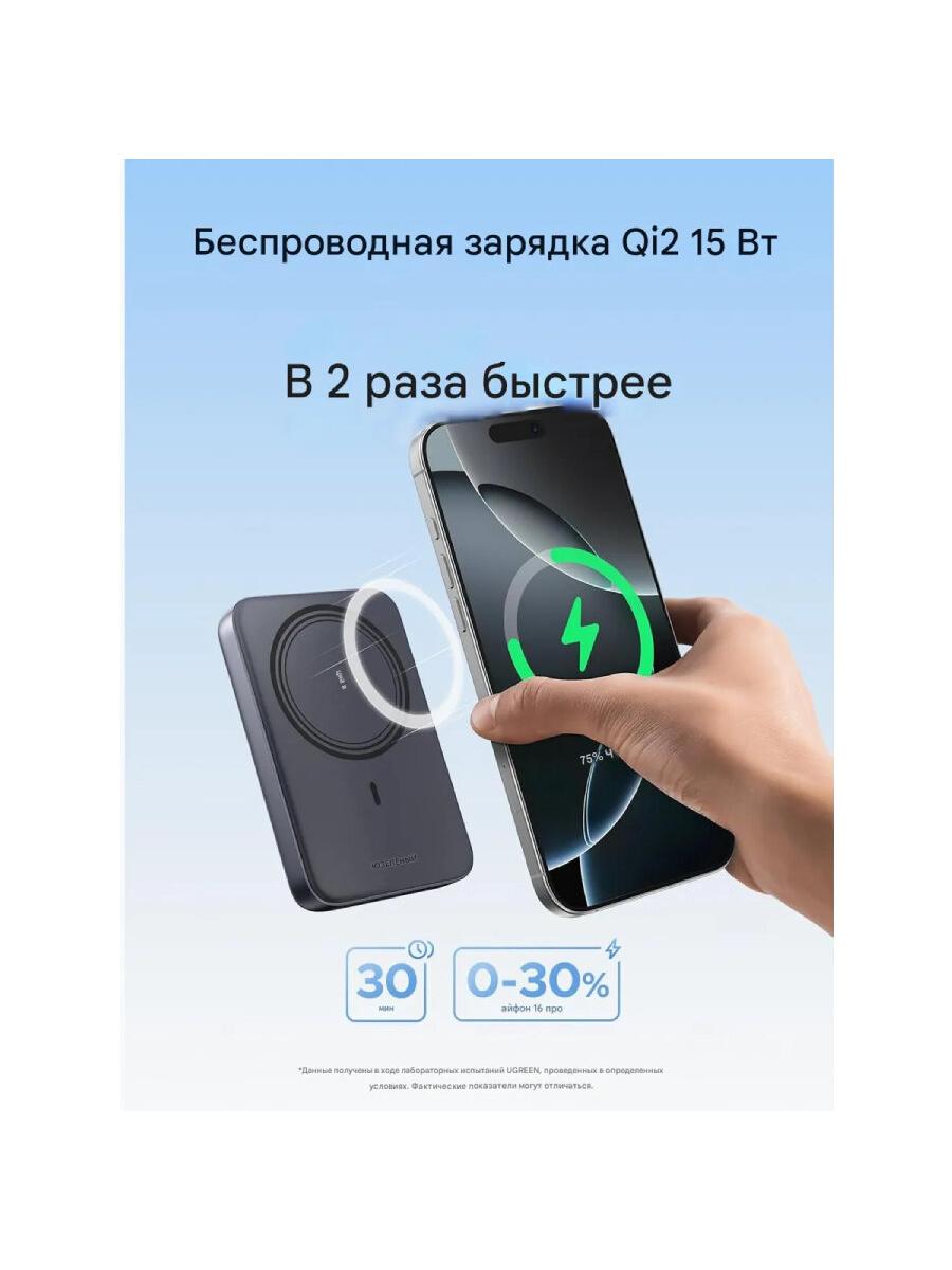 Внешний аккумулятор Ugreen 55135B - это продвинутая беспроводная аккумуляторная батарея емкостью 10000 мАч, поддерживает стандартную быструю зарядку Qi2 и мощное магнитное соединение. Благодаря компактному дизайну, но впечатляющей производительности, этот продукт помогает заряжать устройство удобным и безопасным способом, особенно подходящим для пользователей iPhone и устройств поддержки беспроводной зарядки.