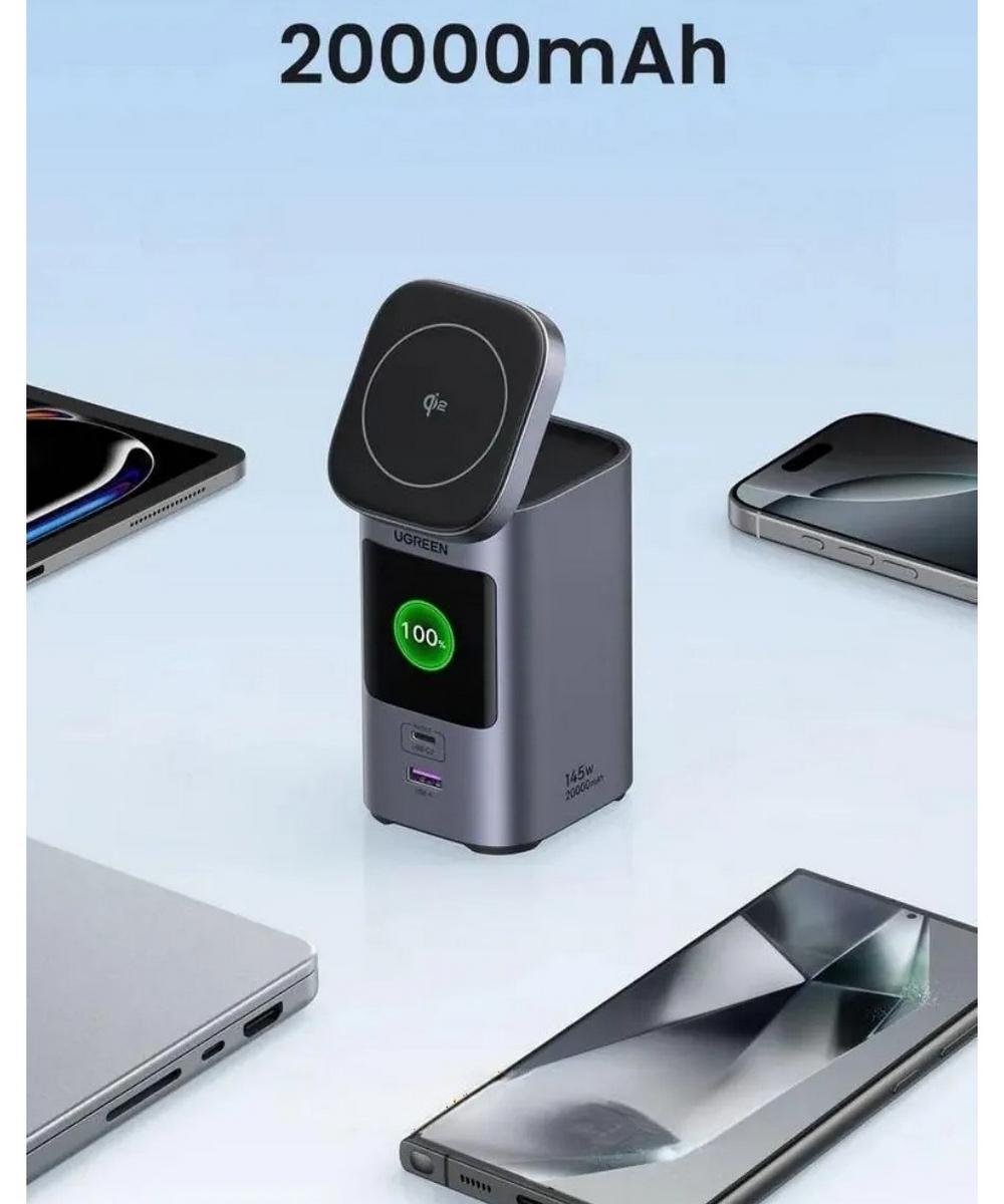 Внешний аккумулятор Ugreen PB771 PD емкостью 20000 mAh оснащен 3 разъемами 2хType-C +1хUSB-A + Magnetic Qi2 Wireless , что позволяет подключить к нему одновременно несколько устройств и не беспокоиться об их безопасности. Встроенная защита эффективно предотвращает их повреждение. Интеллектуальная система определяет тип подключенного устройства и автоматически регулирует силу тока и напряжения. Полная защита как аксессуара, так и заряжаемых устройств от перезарядки, перегрева и коротких замыканий.