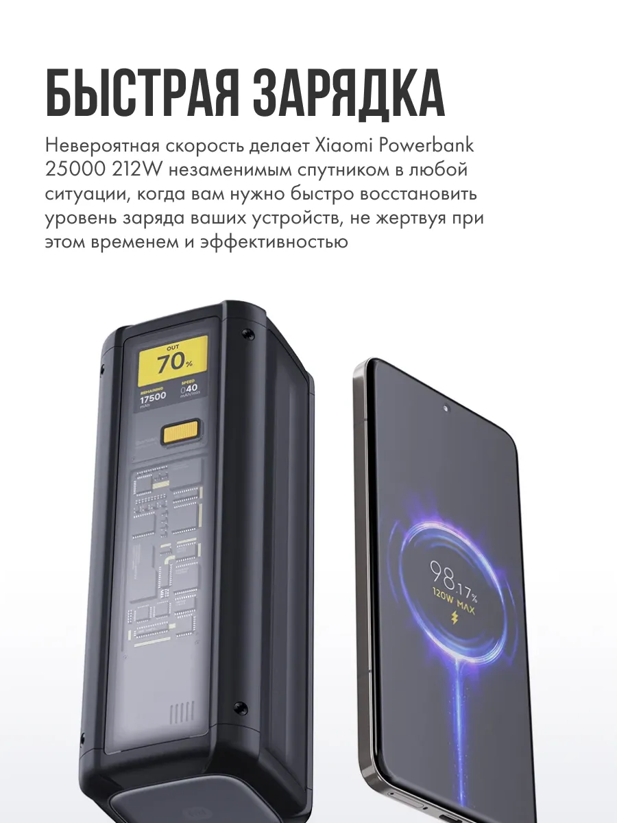 Павербанк Mi 212W HyperCharge Power Bank 25000mAh 1 BHR9970GL — отличный выбор для тех, кто ценит высокое качество, эффективность и надежность.