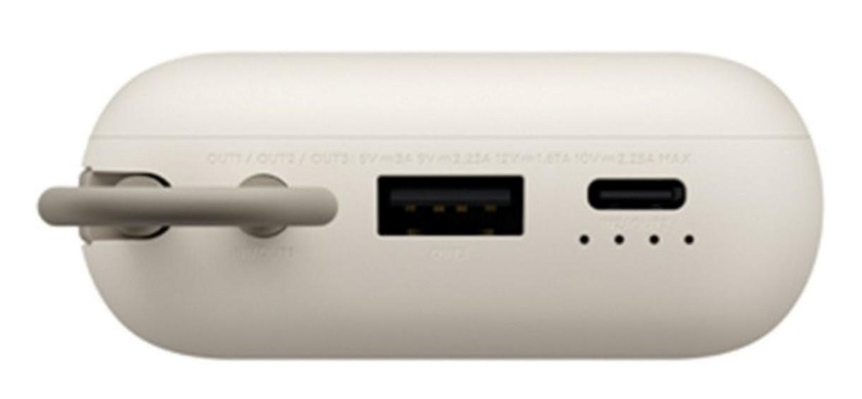 Внешний аккумулятор оснащен встроенным кабелем для быстрой зарядки Type-C, который упрощает пользование, облегчая зарядку электронных устройств и самого внешнего аккумулятора.