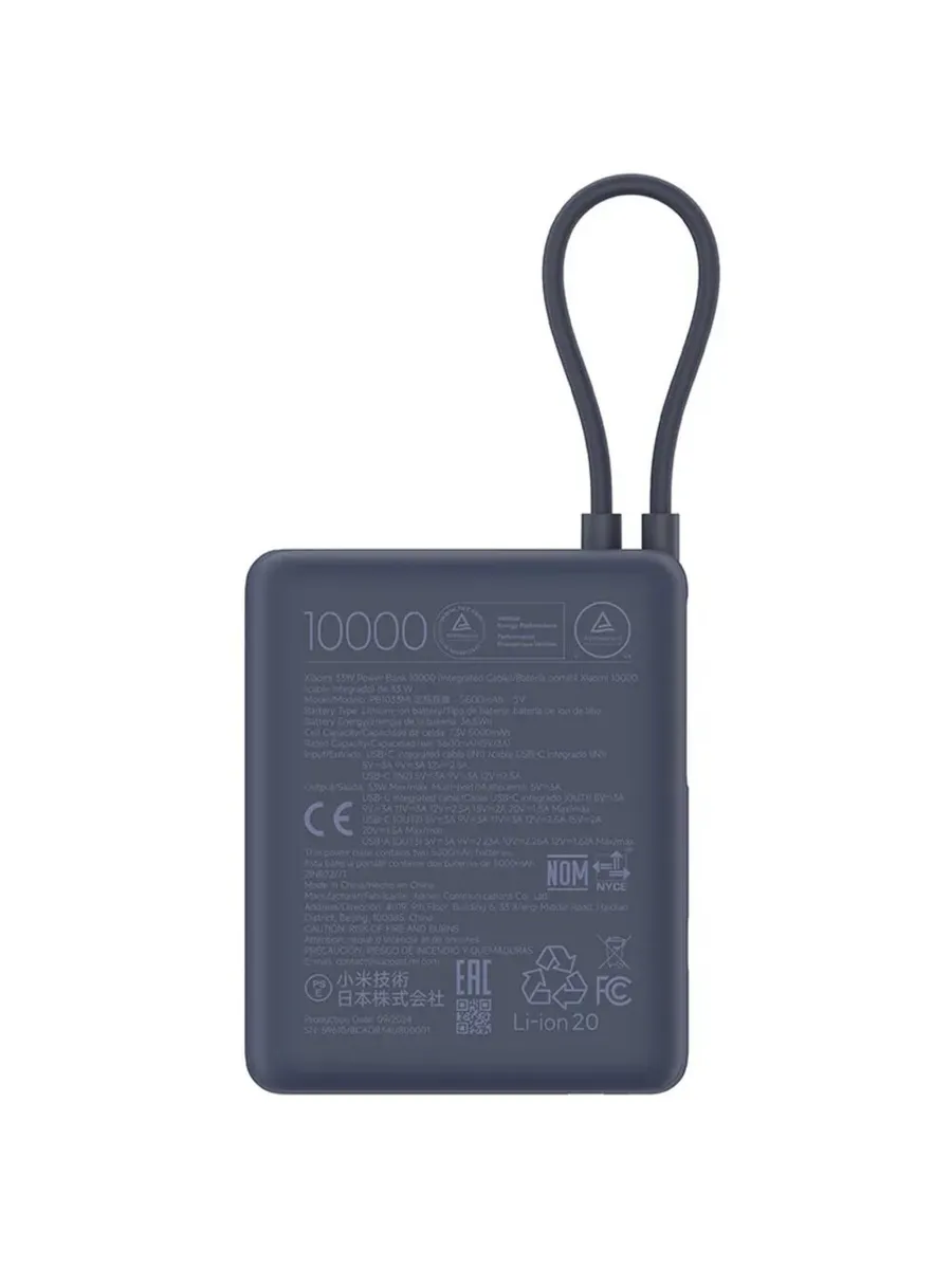 Ёмкость 10 000 мА·ч обеспечивает несколько циклов зарядки, оставаясь при этом удобной для переноски — аккумулятор легко помещается в сумке или рюкзаке. Корпус выполнен в приятном синем цвете с лаконичным дизайном, характерным для техники Xiaomi, и устойчив к повседневным царапинам и потертостям.